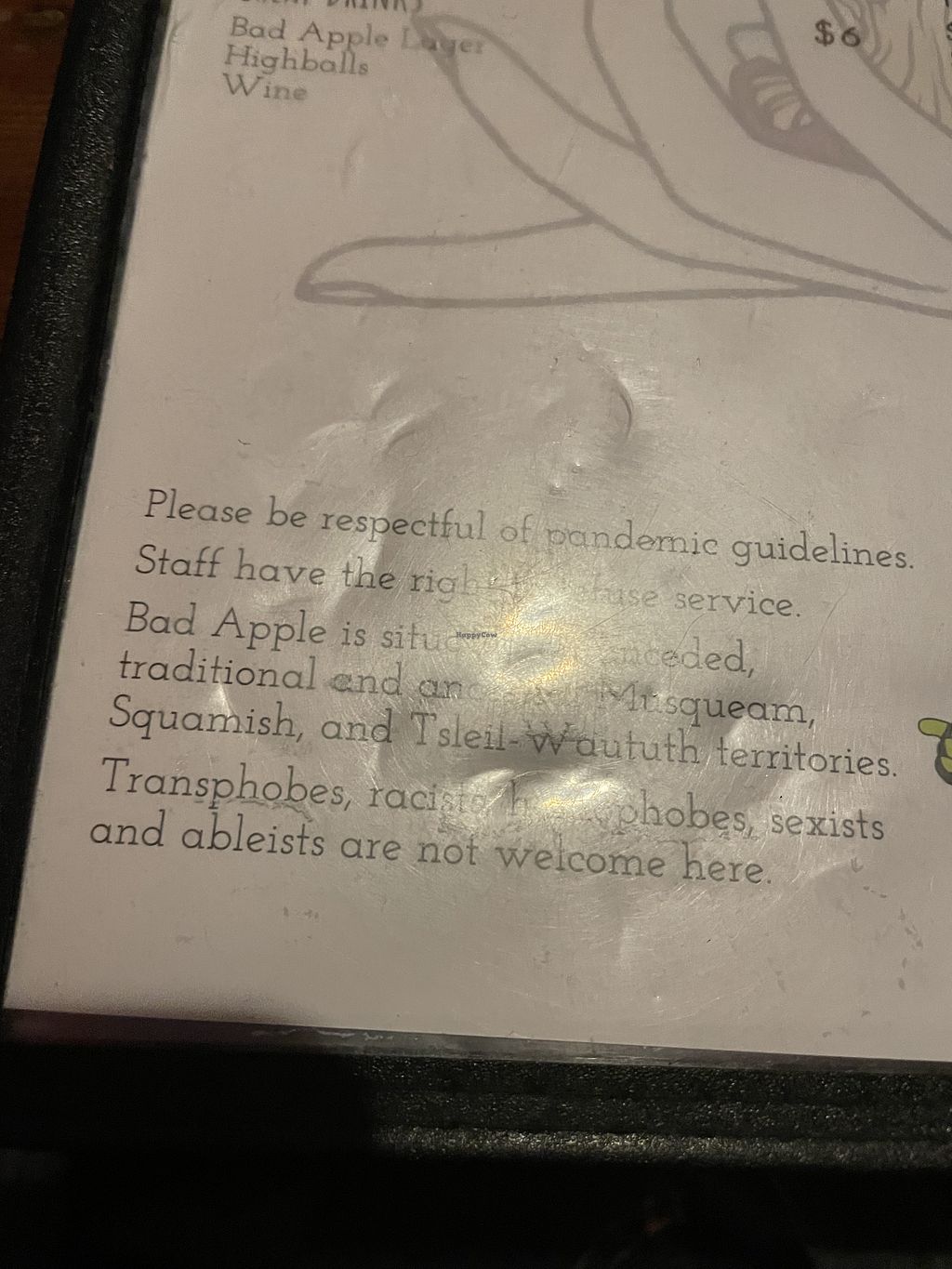 Ok so I’ve been wanting to check this place out for a while but my anxiety wouldn’t let me , finally I drank up the courage to go in and have a meal . Upon first walking in it seemed just like any dingy dive bar on vancouvers scummy east side . So it was instantly comforting like nobody’s gonna judge you . Then I was greeted by someone with the most beautiful eyes and seated at the bar where they promptly gave me a menu and attentive to when I was ready to order they began my order . I started with the bad apple lager and nachos . 👌100% delicious . Then the bacon cheeseburger for my main and I’m a big boy you can believe that at 6’6 250 of muscle i can pack the food back and this meal had me stuffed for a few hours to say the least