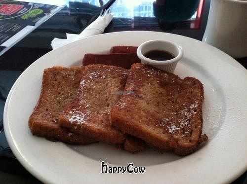 Read moreI came on a Sunday morning for breakfast. At 10:00 AM, the place was nearly empty. The waiter seemed new and unsure. I ordered coffee and warned me that he would have to make some. Ok, at 10:00 AM on a Sunday morning, it might be a good idea to brew coffee. Lol. I ordered the coconut French toast, but they were out, so I got the vegan 7 grain French toast and a side order of veggie sausage. I would love to tell you that this was great, but it was really just three slices of 7 grain bread, barely battered, grilled, sprinkled with powdered sugar, and then served with maple syrup. It was good, but it could be so much better if they went with thicker bread, soaked the bread in the batter longer, and served it with bananas, nuts, and/or fruit. The sausage was very good, if not a little too real. It looked like it was one of their veggie hot dogs, sliced diagonally, and grilled.