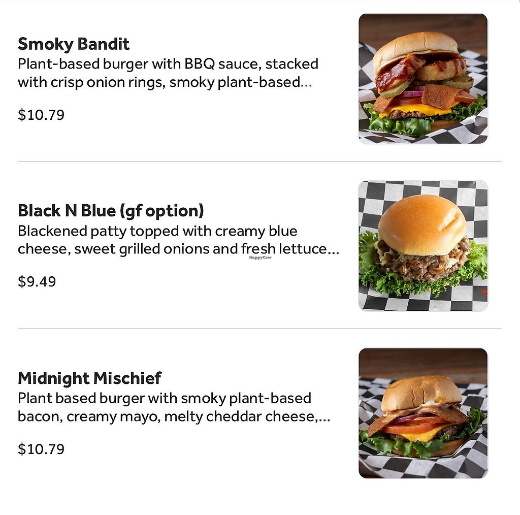 Burgers menu