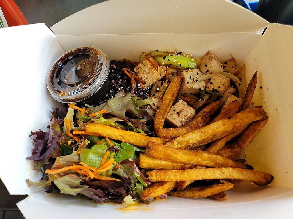 Fast casual place with fresh food with plentiful portions and a really helpful staff to help you understand everything. Really loved the veggie tempura, and be sure to ask for the vegan sauce option which is their plum sauce.