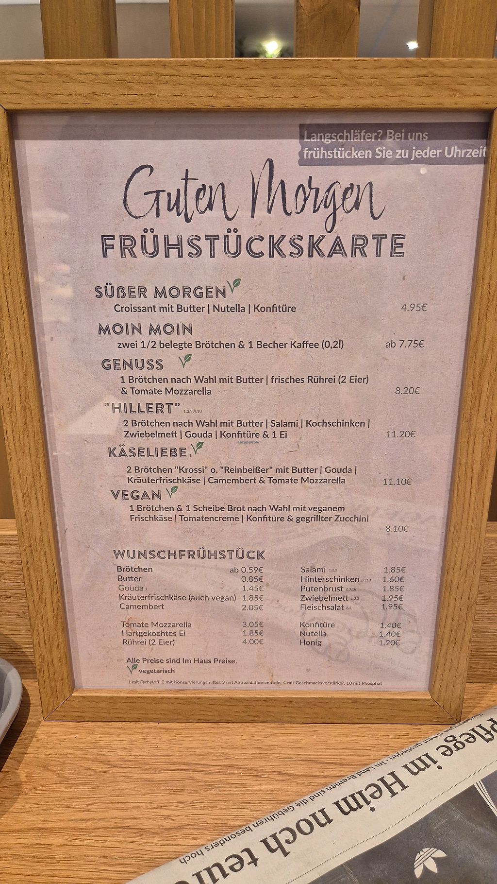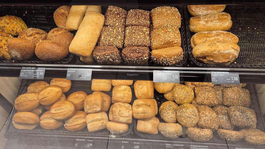 Clearly labeled vegan breads and buns (Brötchen). You can order coffee with oat milk without any extra charge and a vegan breakfast is also offered.