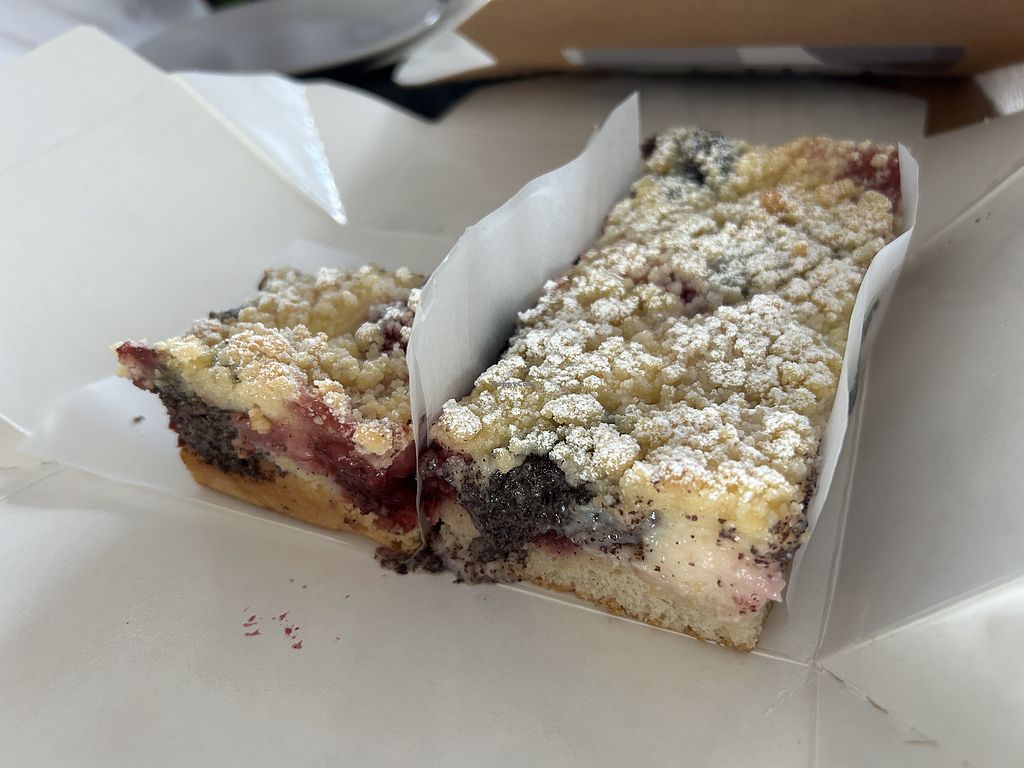 Wir haben uns dort Süßstückchen und Brötchen geholt. Es ist alles vegan und schmeckt sehr gut. Auch wenn es ein bisschen weiter weg von uns liegt, werden wir dort öfters vorbeischauen. Vergleichbare Süßstückchen wären mir in der Region nicht bekannt.