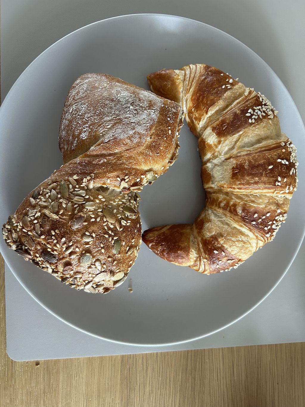 Laugencroissant, Schokobrötchen und Zimtknoten + Croissant und Plunder…
