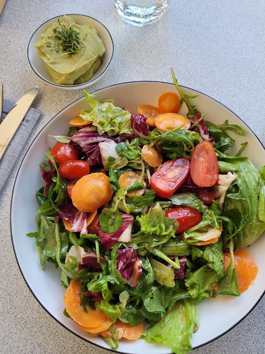 Read moreA had a medium sized salad bowl, which was good in size and a lovely dressing (there was plenty of it 😅) for less than 6€ with a bread basket and nice variation of bread. I ordered guacamole extra and had a sweet decaf iced coffee with almond syrup.
