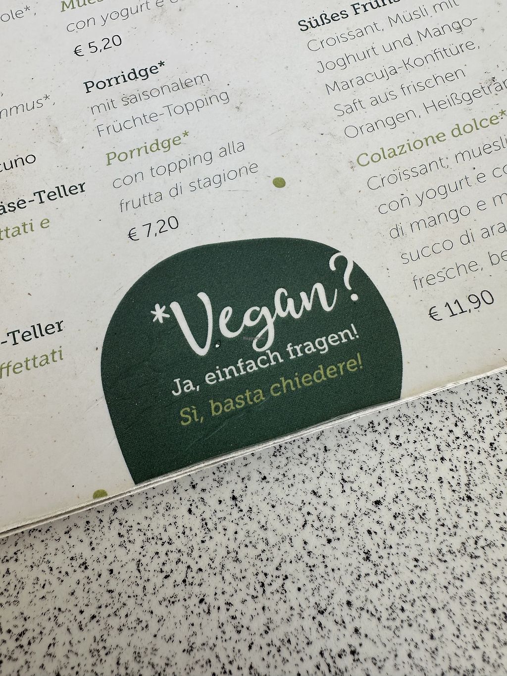 Staff is very friendly, speaks German, English, Italian and willing to help with vegan options.