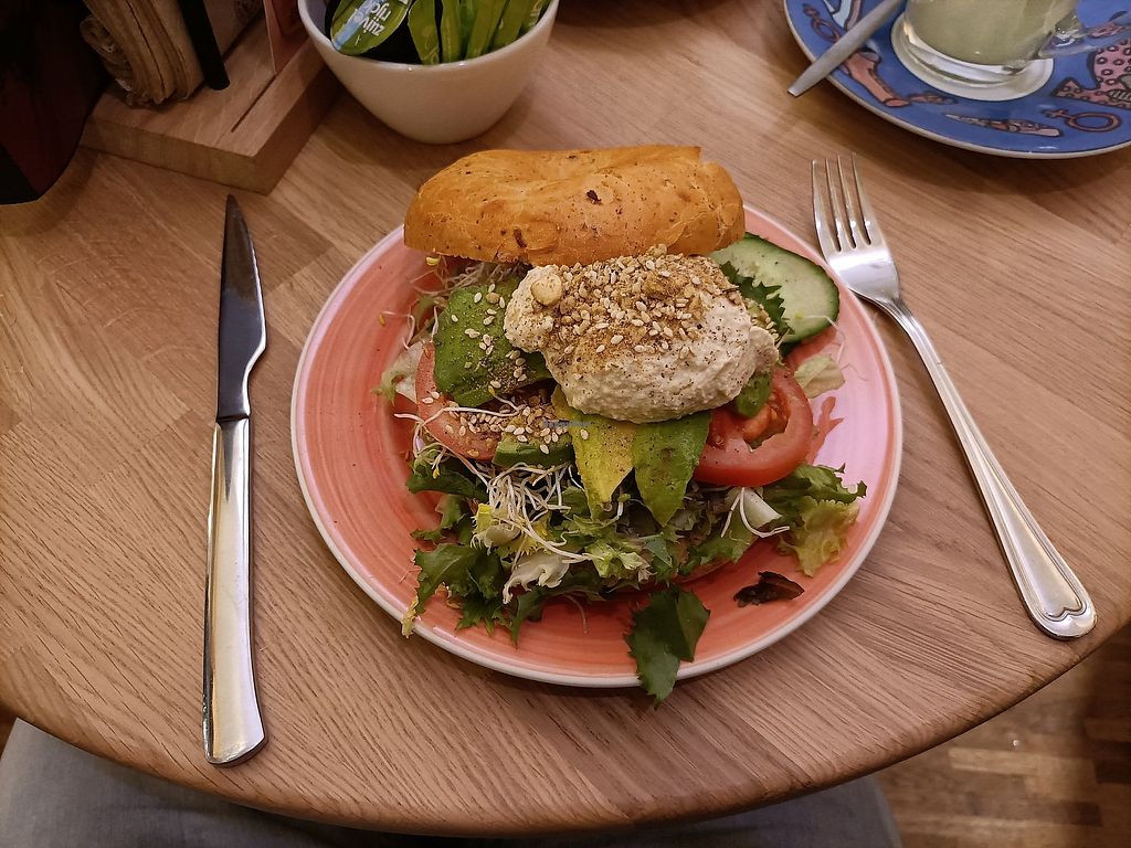 We visited here twice during our break to Eindhoven. First time, I had the Avocado and tomato with the tomato and pesto cream cheese, my partner had the tex mex, we shared the pecan pie. Second visit, I had the Thai Chicken Chilli, partner had the Bali and we shared the banana bread. So much vegan cream cheese to choose from! All food was lovely albeit a tad pricey. Cafe itself had a lovely botanical, earthy vibe and decor. Staff were friendly.