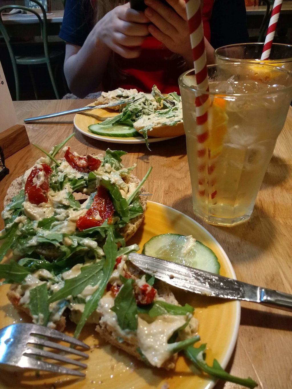 Lots of choice for veggies and vegans (I just asked to swap cream cheese for hummus which was no problem) As well as savory, they have a few choices of bagels with sweet toppings, but didn't try these. Really friendly staff and tasty food.