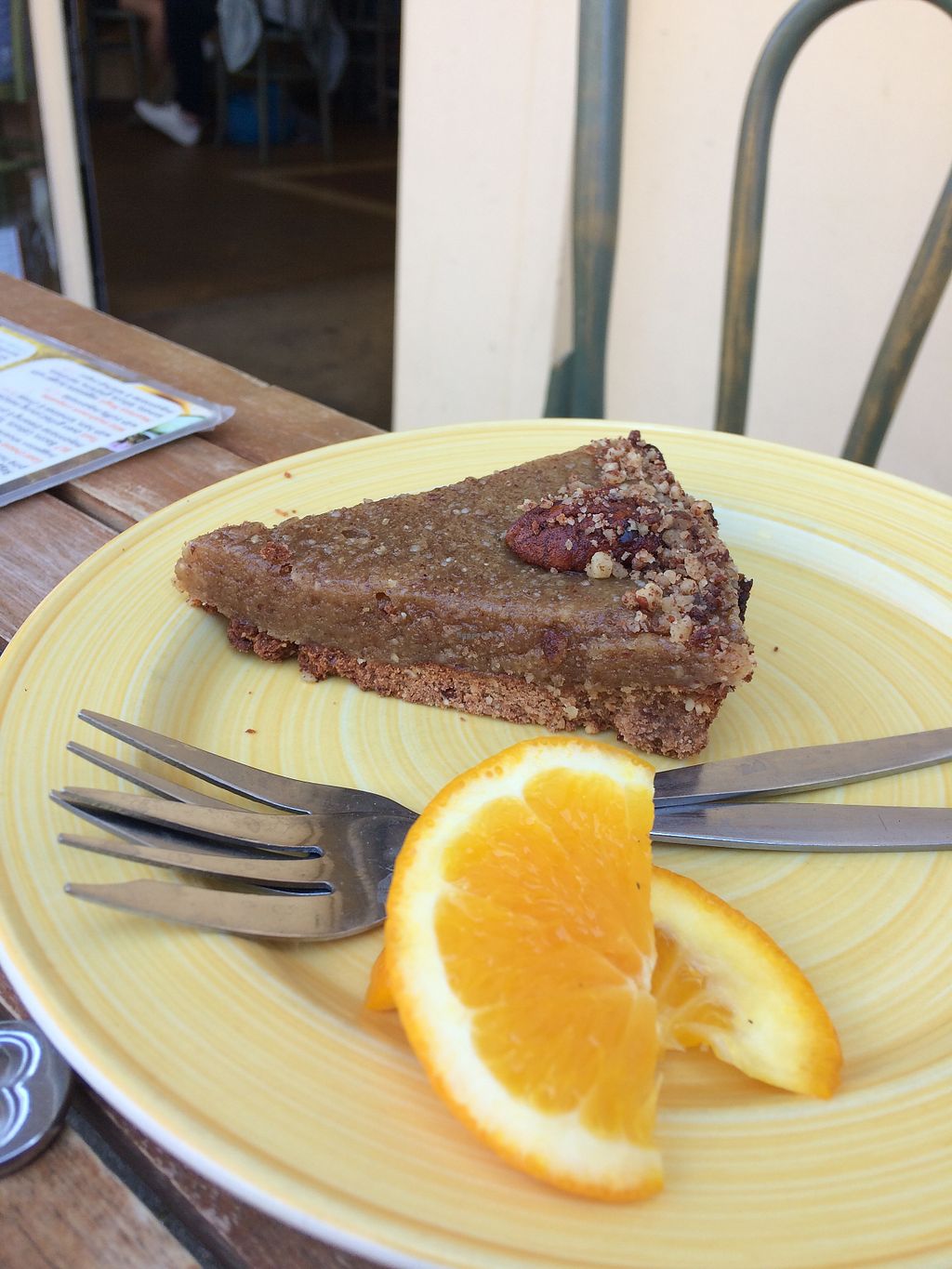 My boyfriend had a tasty chicken bagel and good americano but was also disappointed with the pecan pie.
