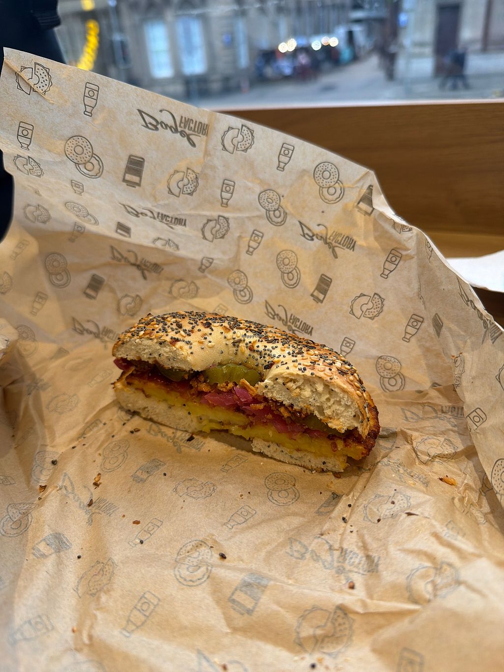 Lacto Ovo Breakfast Non-veg Serves meat, vegan options available. vegan bagels, cream cheese and breakfast sandwiches , vegan bagels, cream cheese and various breakfast sandwiches Open Mon 09:00-17:00, Tue-Sat 08:00-17:00, Sun 09:00-17:00. More