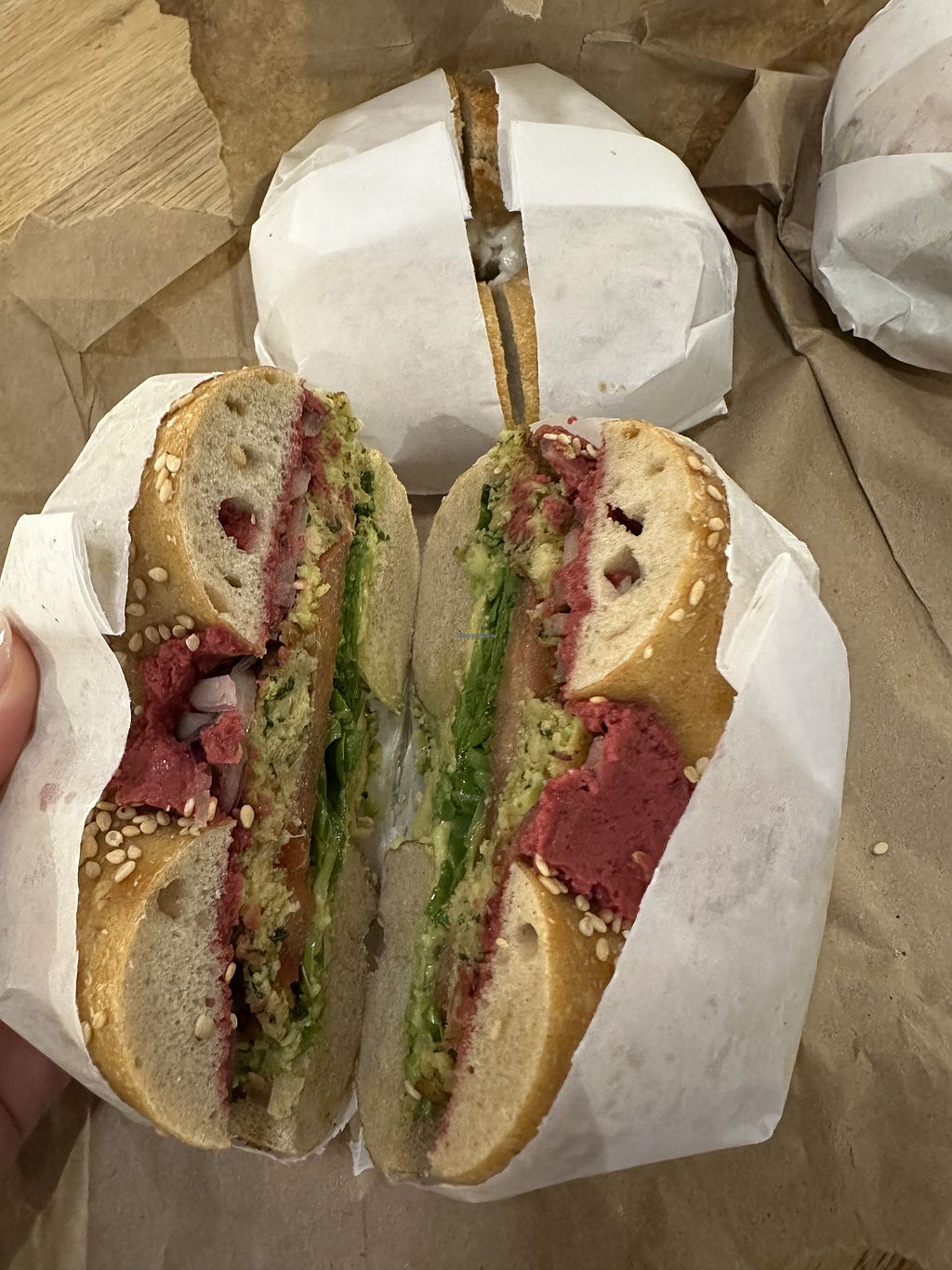 Das Power G-Bagel Sandwich ist vegan.