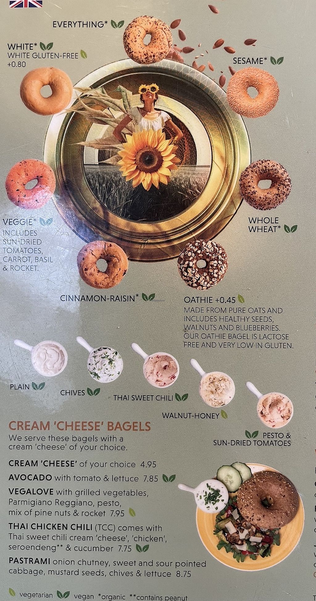 Big range of vegan Bagels, drinks and sweets. The service was lovely and the food very tasty! I recommend the pulled mushroom Bagel with chives cream cheese ALL VEGAN!