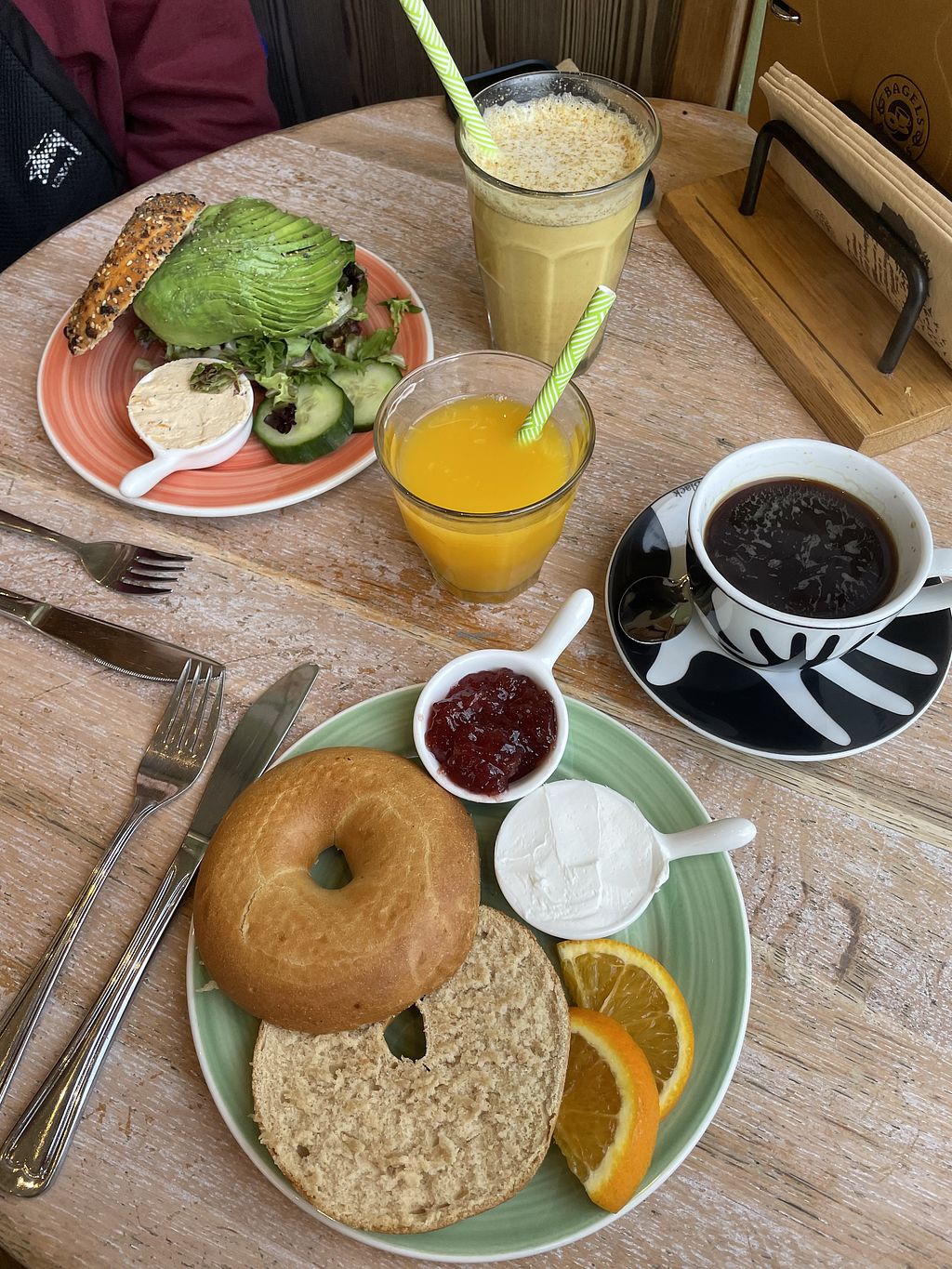 Pros: Vegan cream cheese - yum, Good coffee, with milk choice