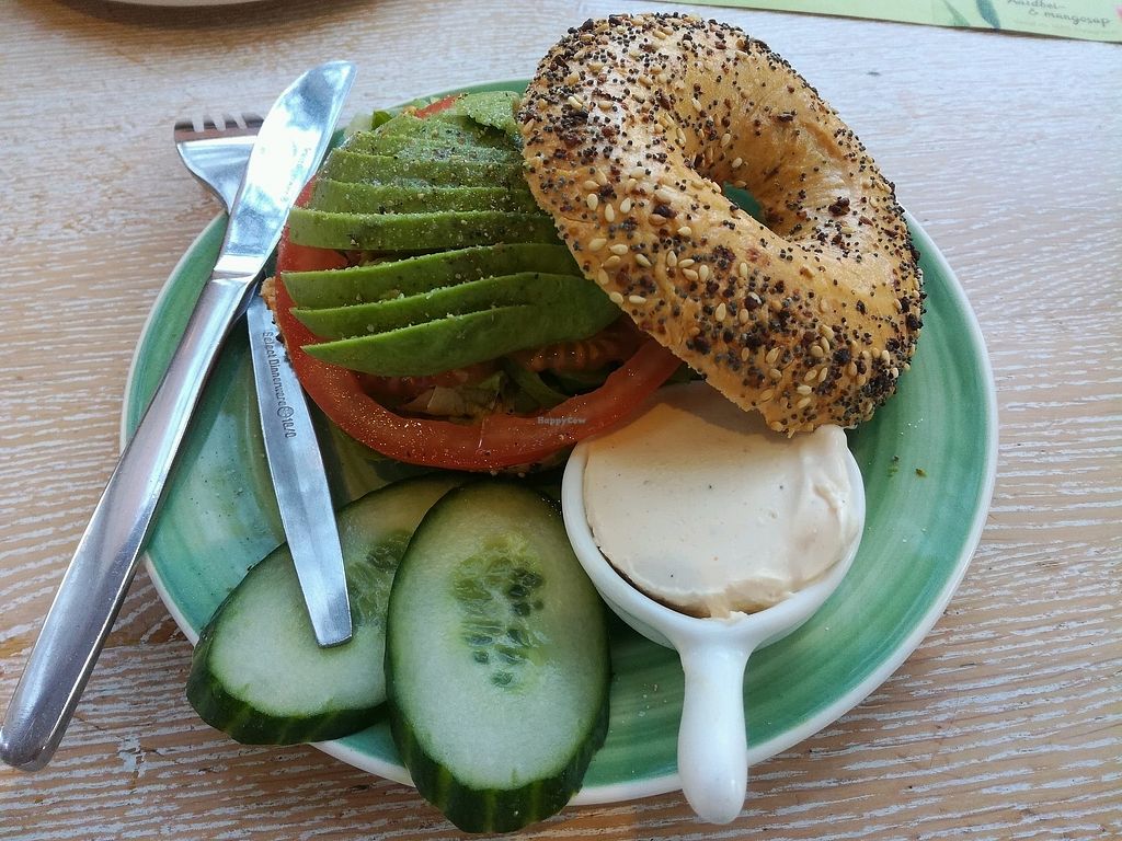 Bagel with vegan creamcheese, tomato and avocado