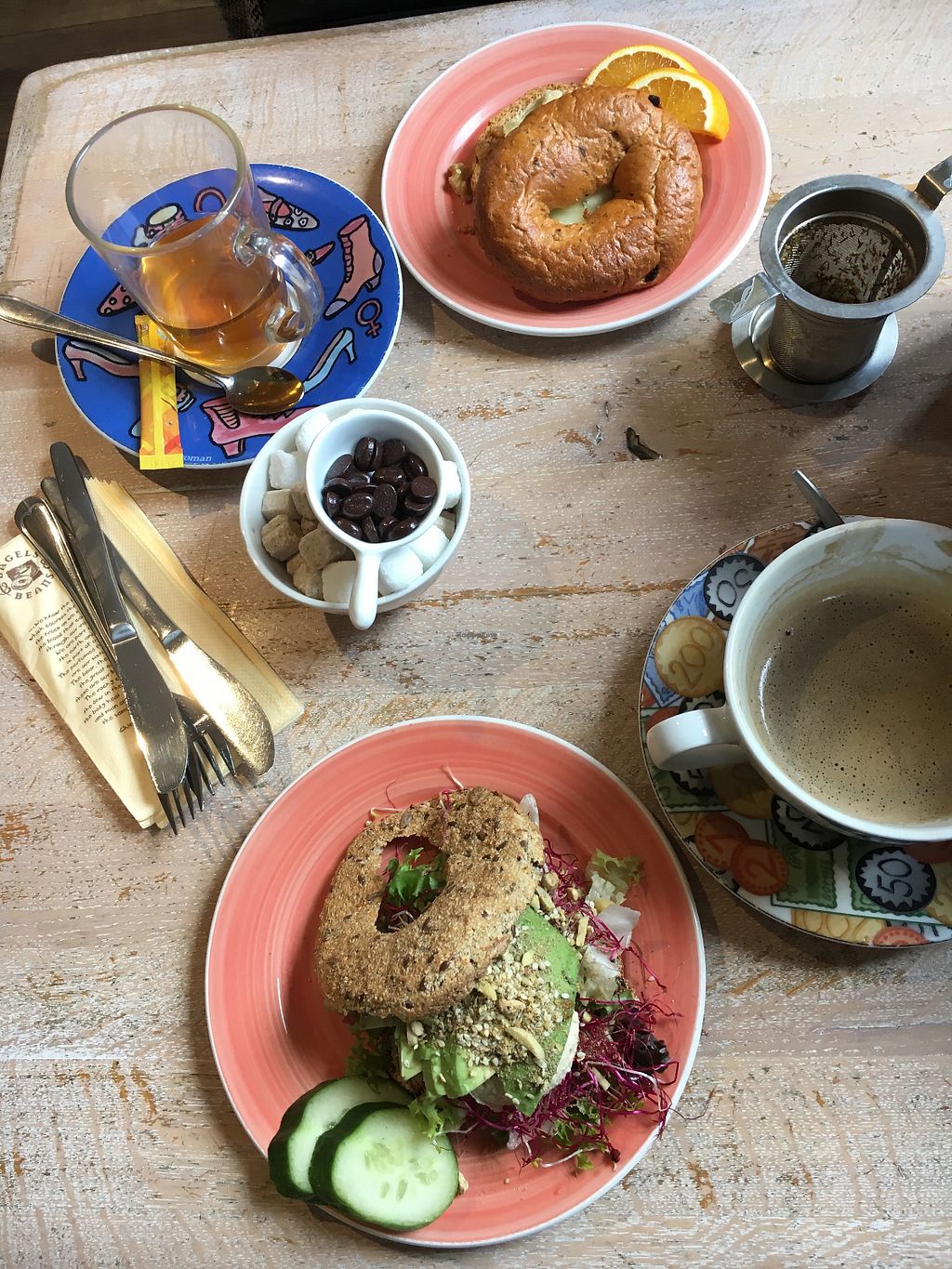All our order - 3 bagels, 2 teas, 1 coffee