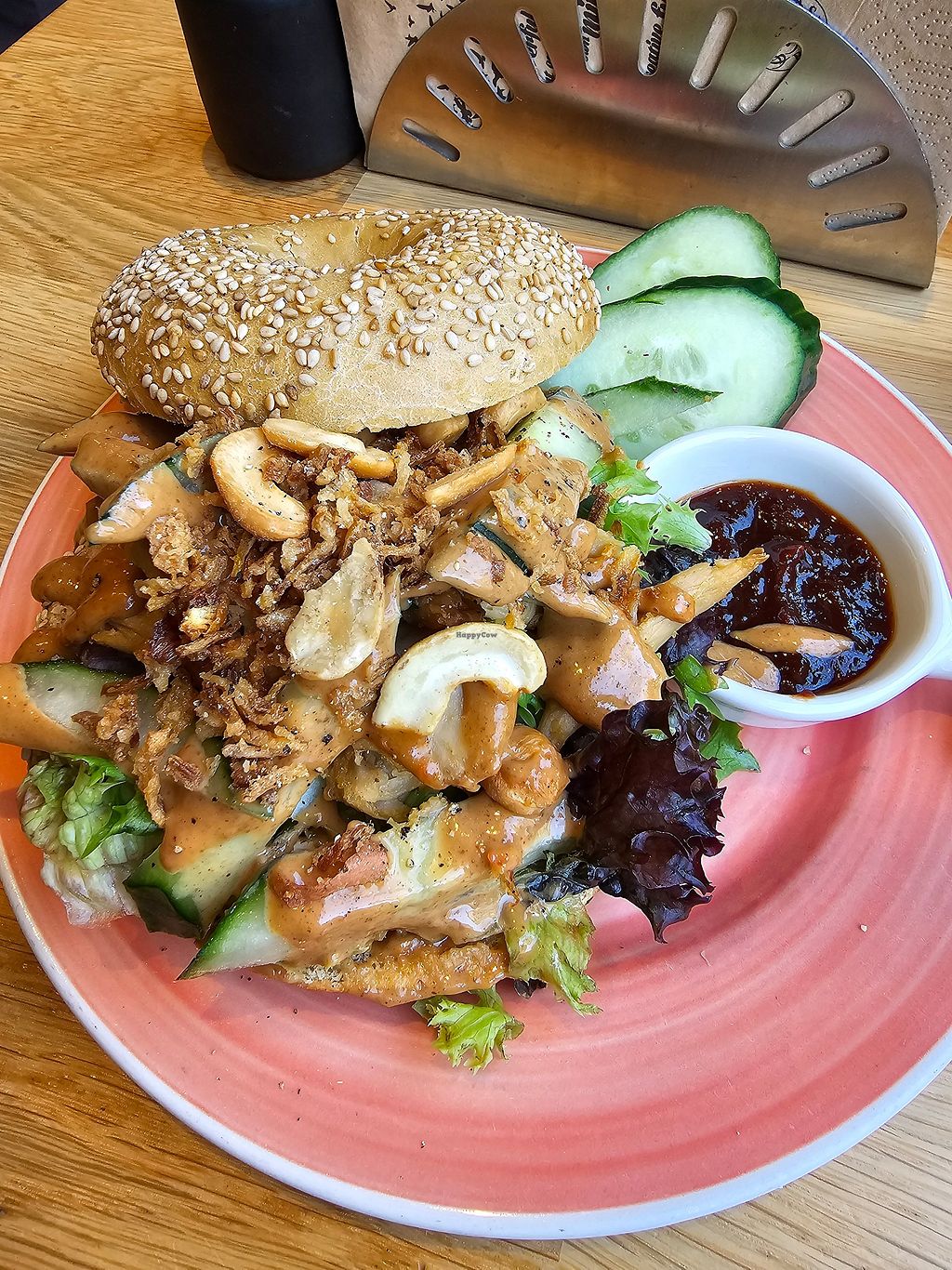 Ik had een bagel Bali met kipstukjes, pindalimoen dressing, gebakken uitjes, cashewnoten, sambal en sla. Ik vond de bagel erg lekker. De latte die ik had besteld vond ik helaas niet zo lekker. Op de menukaart best wel aardig wat vegan opties. Dus ik zou hier zeker nog wel teruggaan om een andere bagel te proberen. De bediening was prima. Het interieur simpel en wel een beetje toe aan vervanging