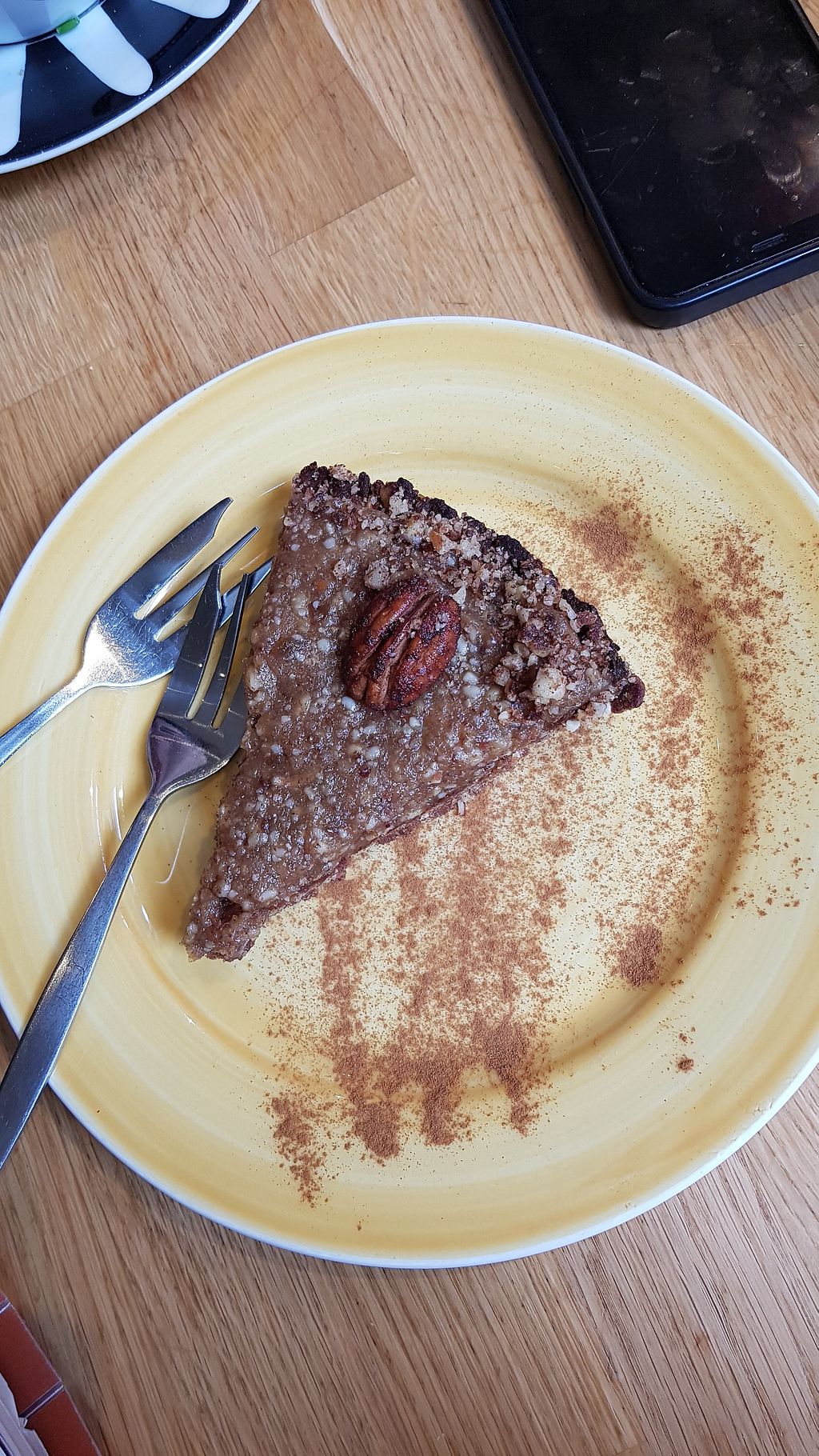 I also had a pecan pie which seemed to be a raw cake (forgot to ask). It was good too; but not great. Many drinks are also available with plant-based milk.