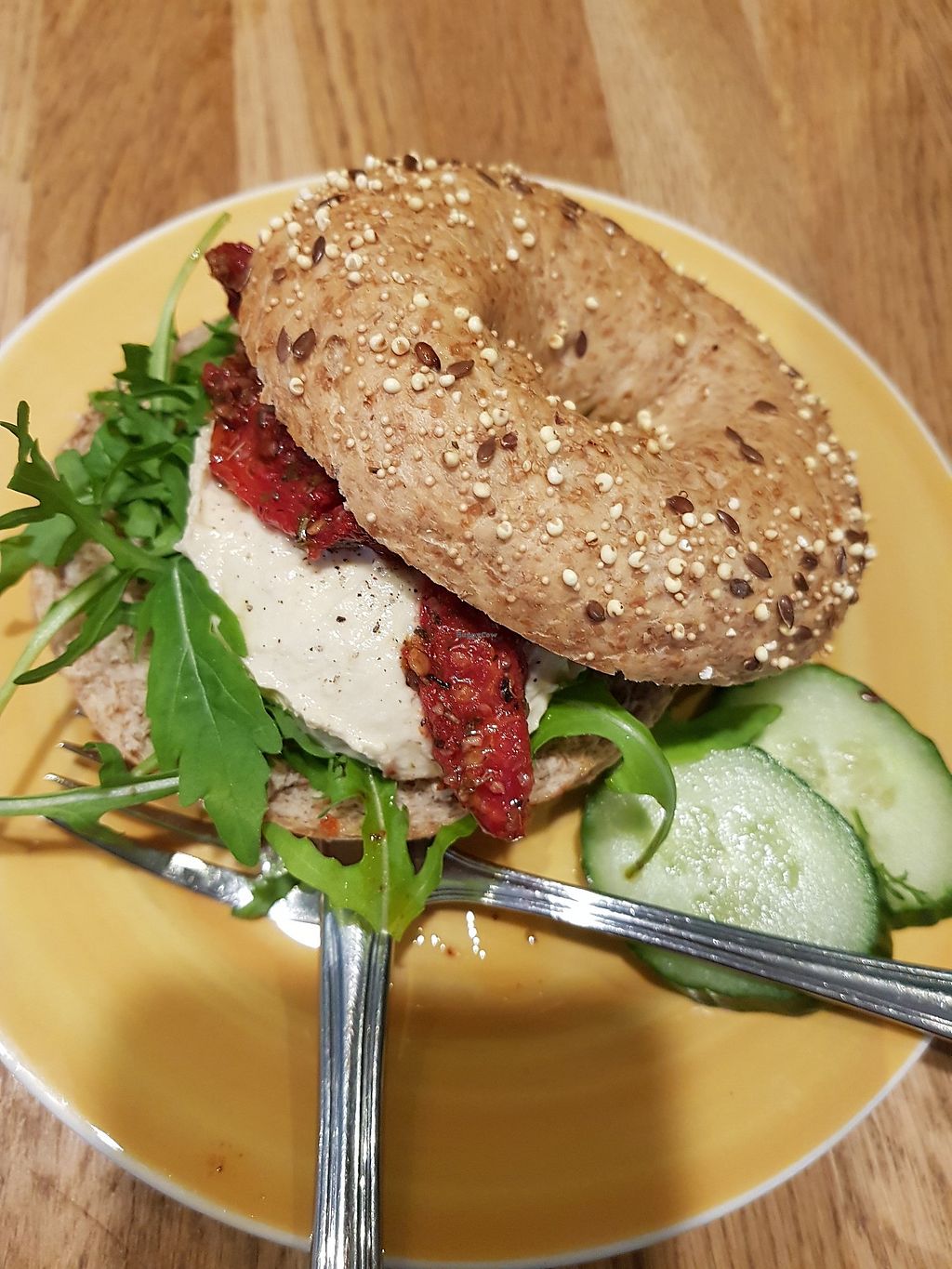They have a few vegan options. I had the hummus bagel and it was pretty good. They have plant milk for you coffee too!