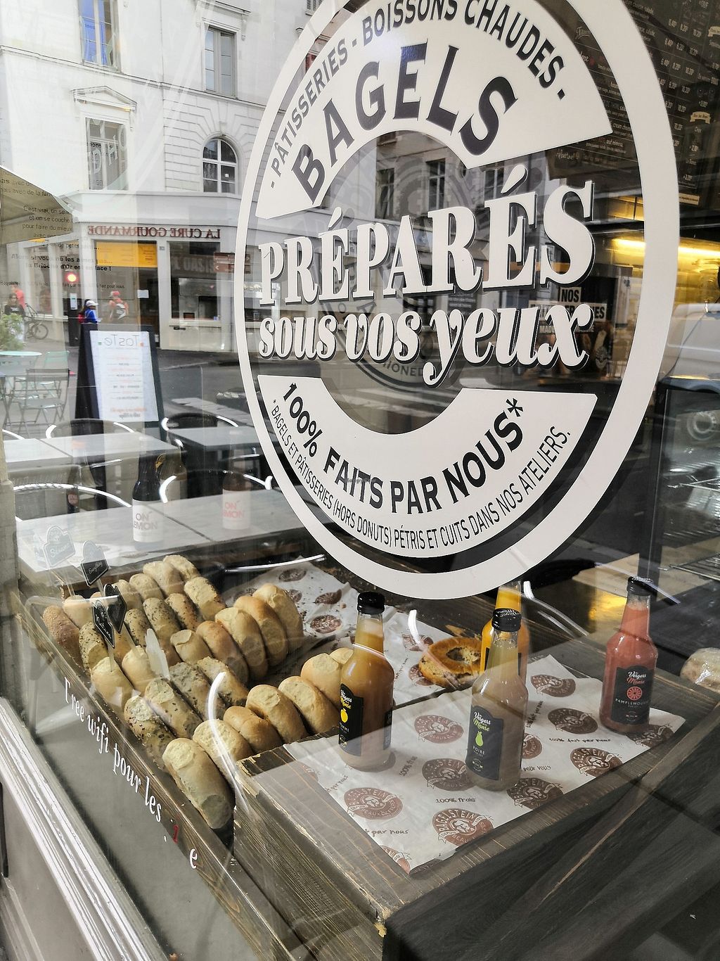 Serves meat, vegan options available. Bagel shops offering breads, baked goods, sandwiches, and coffee. The "Josephine" bagel is vegan: use it to compose a vegetable sandwich. Brioches are not vegan friendly. Check with staff to see which of the breads are vegan. Open Mon-Sat 08:00-22:00. Closed Sun.