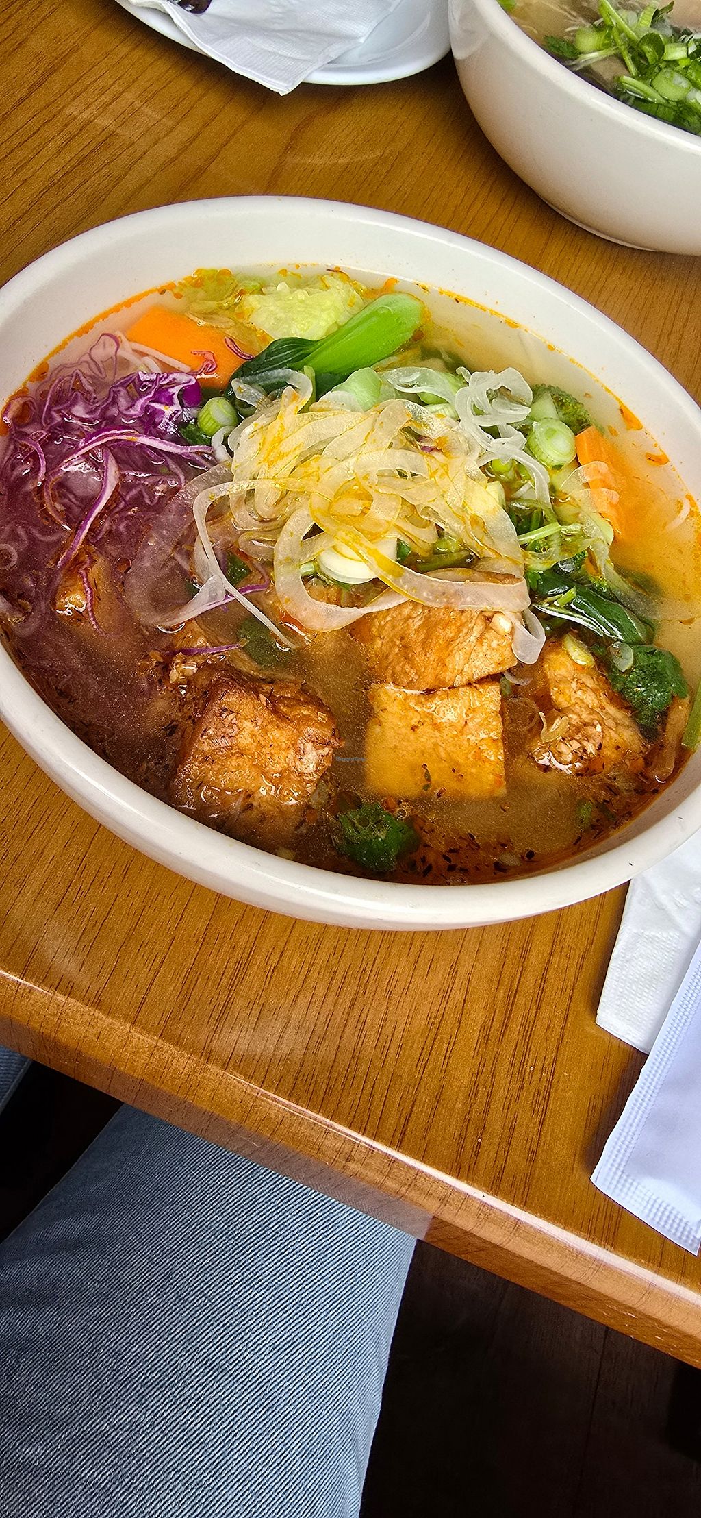 Stumbled across this little Vietnamese place and it ended up being amazing. The lotus salad was unforgettable—easily one of the best salads I’ve ever had. We also got the vegan bánh mì and the spicy vegan pho, and everything was packed with flavor. You can tell they really care about the food here. The people working were super nice too. Highly recommend checking it out. The lady that served us said they plan on expanding the vegan menu and making an entirely separate vegan menu. There were already a ton of options so this will become a favorite place for us to walk to!