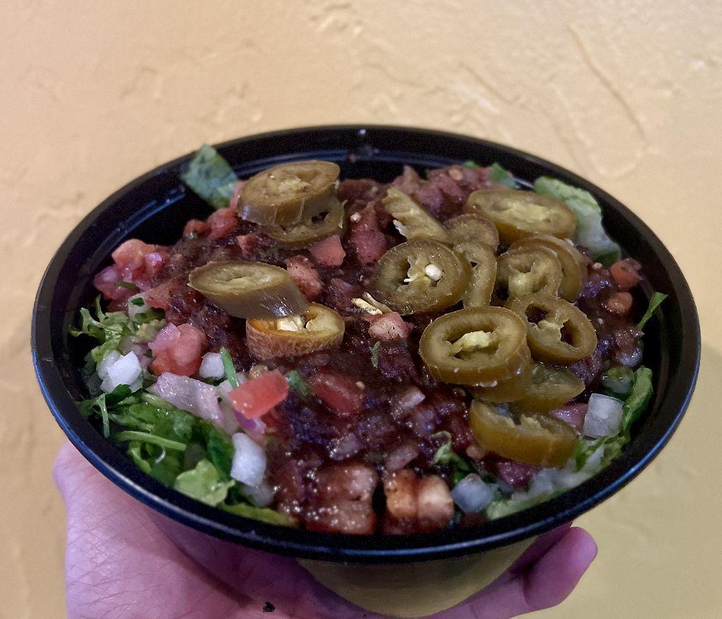 Serves meat, vegan options available. Tex-Mex fast-food chain offering offering Impossible tacos, burritos, and bowls that can be made vegan by omitting cheese & sour cream. Specify vegan. Open Mon 10:30am-8:30pm, Tue-Sat 10:30am-9:00pm, Sun 11:00am-8:30pm.