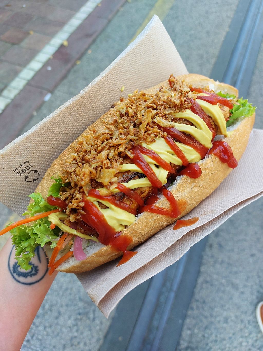 At their Gentse Feesten foodtruck, I thought their vegan hot dogs looked really good, so I wanted to try them out. My friend wasn't a big fan of the bread roll, but I thought it was good. While waiting, we got a free falafel taster because they had just made a bit too much. Their falafel was really good: crunchy on the outside, smooth on the inside & green from the herbs. Would probably go for the falafel next time.
