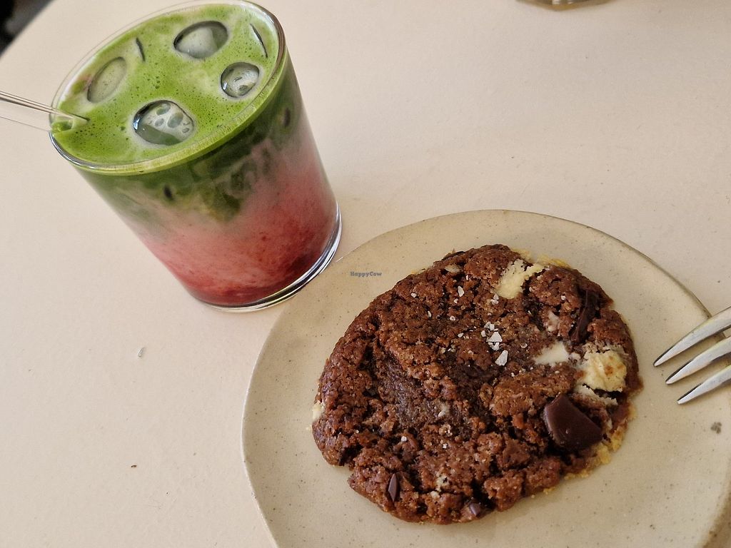 Cappuccino et iced matcha latte au top et cookie ultra fondant 😍