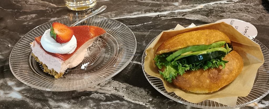 Strawberry and vanilla cake (delicious) and Avocado and hummus bread (…