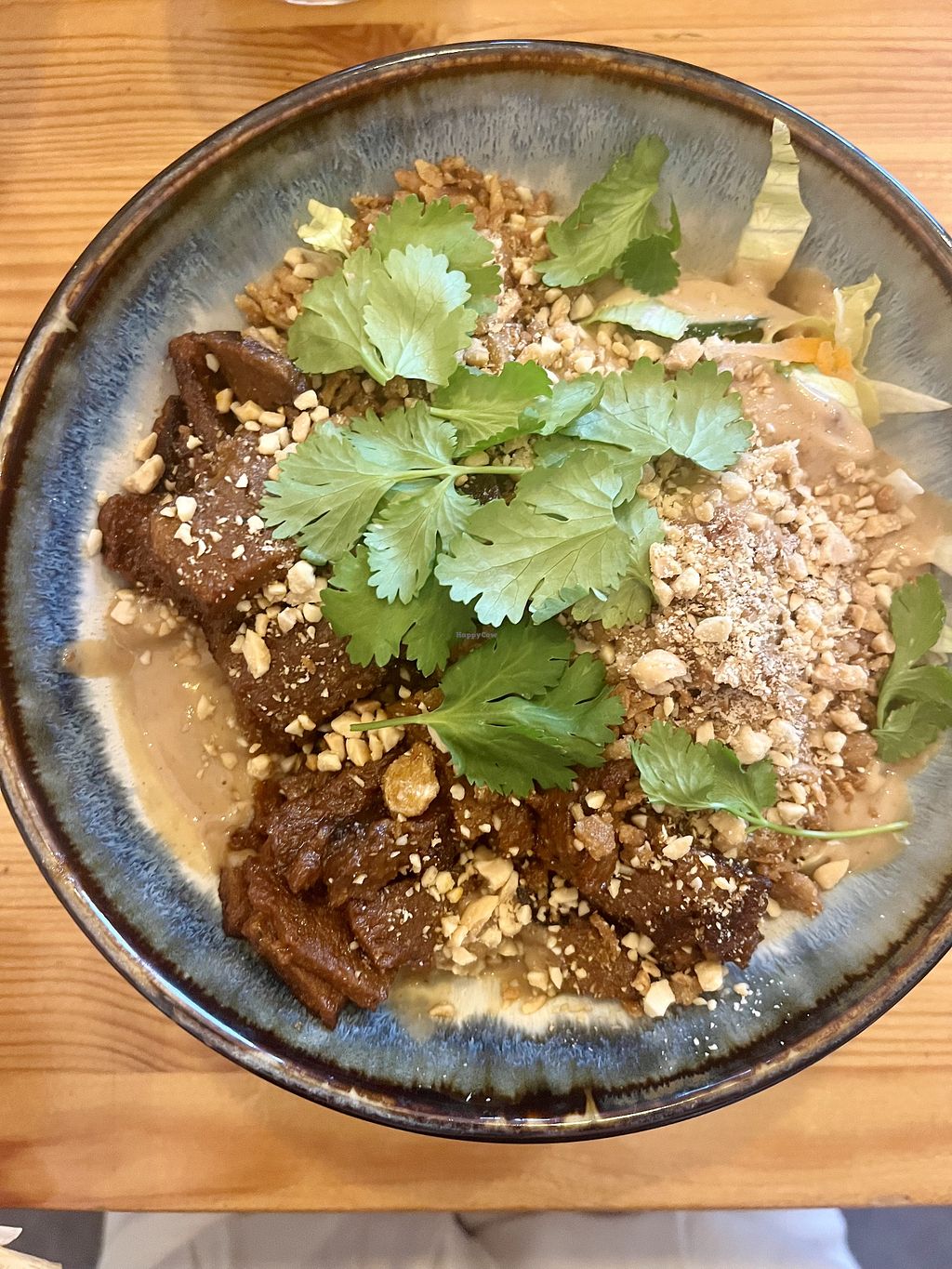 "Bryndza" dumplings. With a cream sauce, apple, bacon and chives