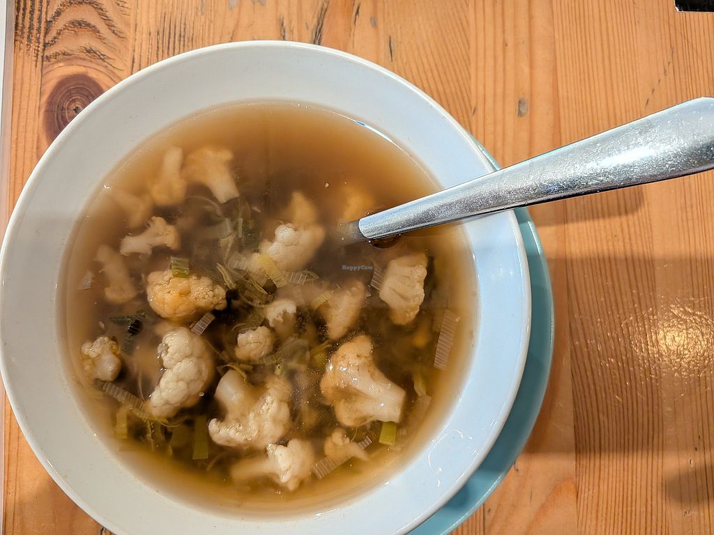 Cauliflower, leek and pea soup