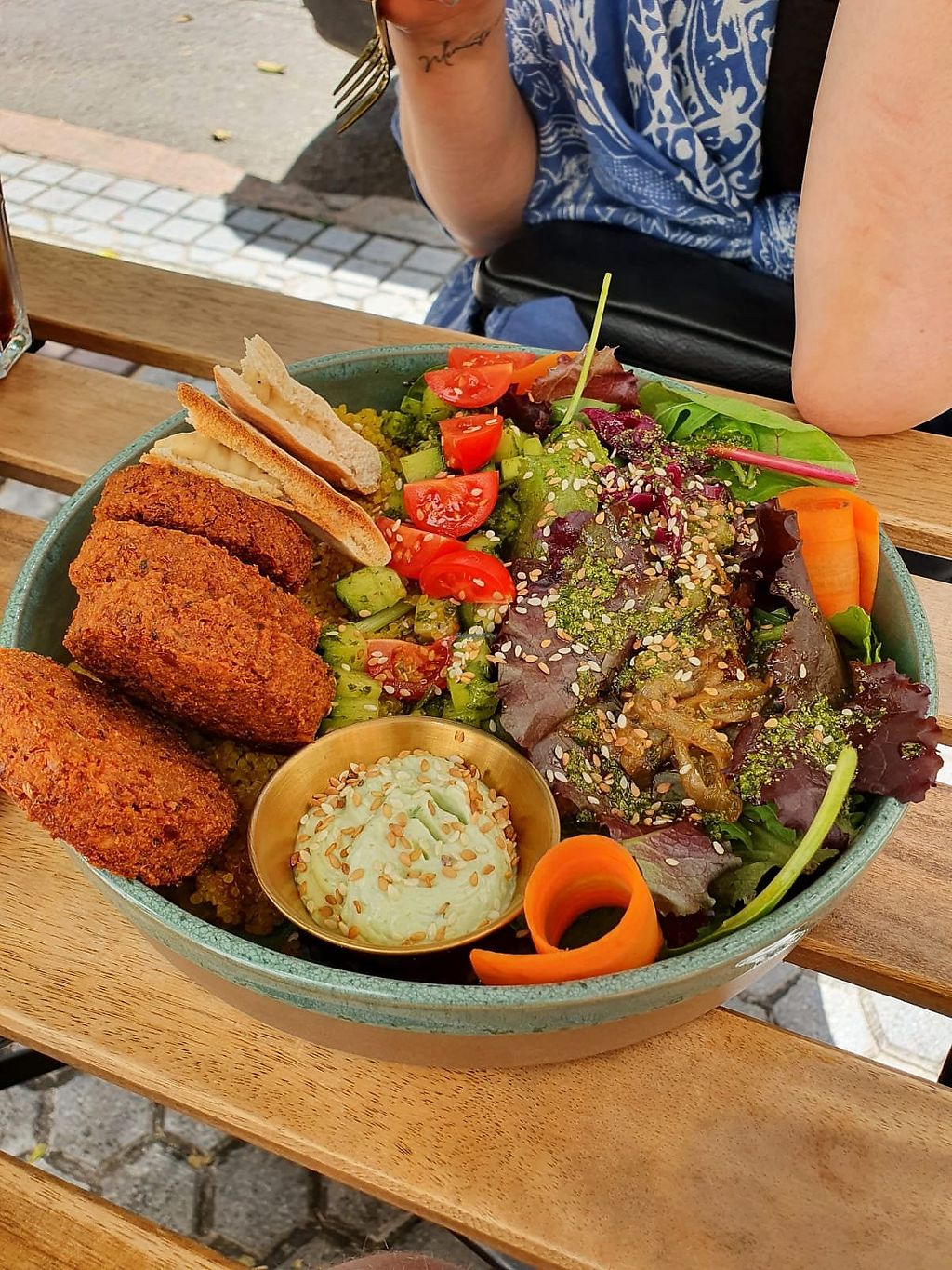 Pros: Scrambled tofu, Hummus, Falafel bowl
