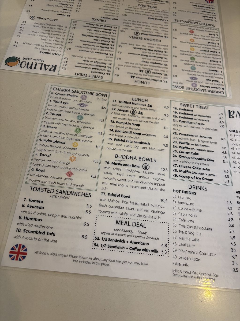 Pros: All vegan menú
