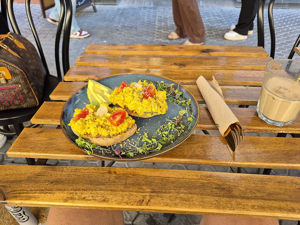 Tofu scramble is the highlight here! We went twice during our time in Seville. The service here is great, the main waiter is delightful and very kind. We had smoothies, falafel bowl, tofu scramble, croissant and arepas and loved it all.