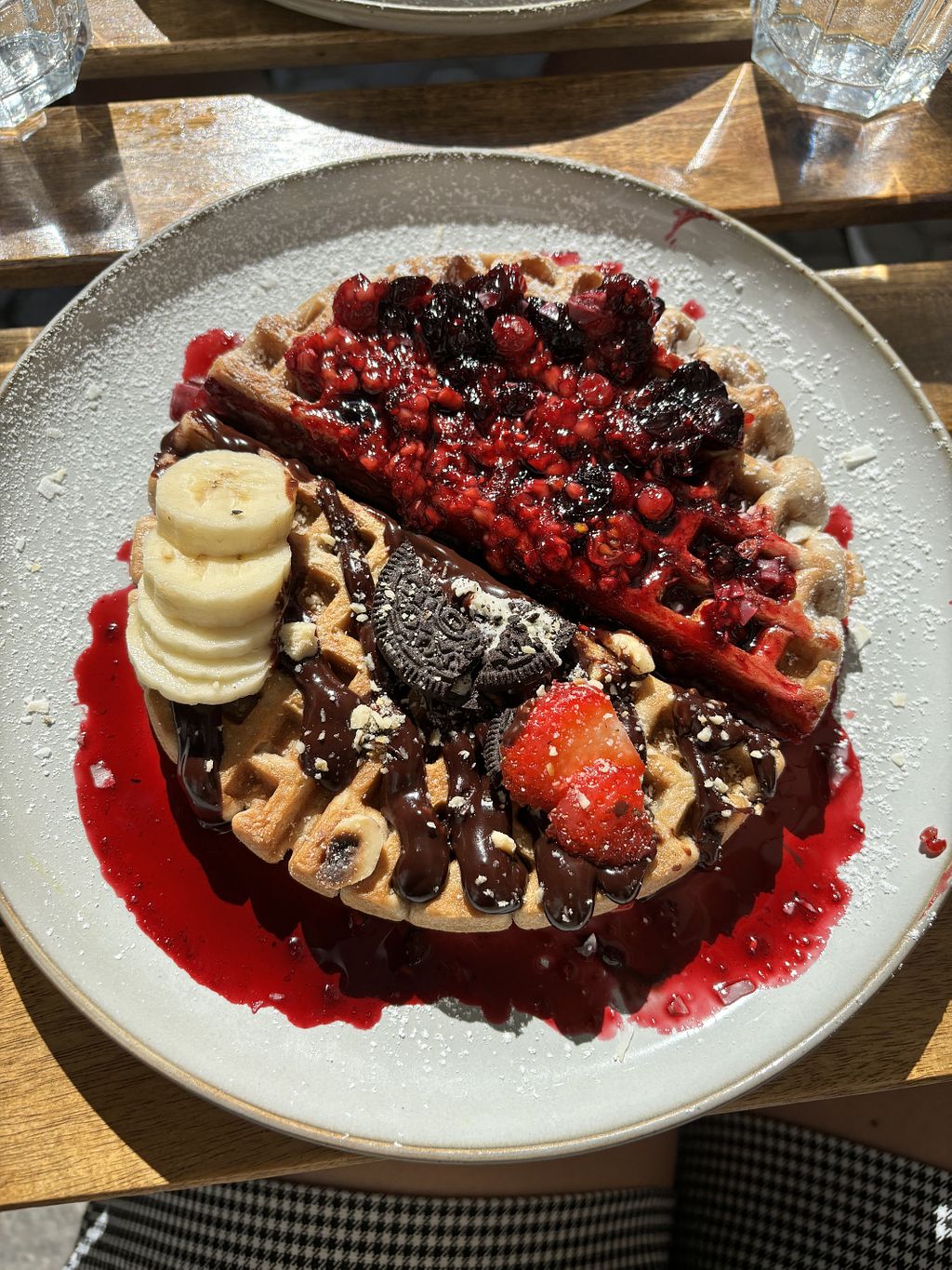 Io e il mio ragazzo (non vegano) abbiamo preso le due bowl del menù e i due waffle che abbiamo condiviso. Tutto buonissimo 🤤