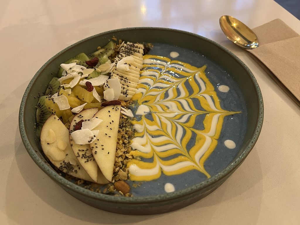 Wide choice of vegan brunch options from 9 am including smoothie bowls, pancakes, croissants all beautifully presented. Closed on Tuesdays