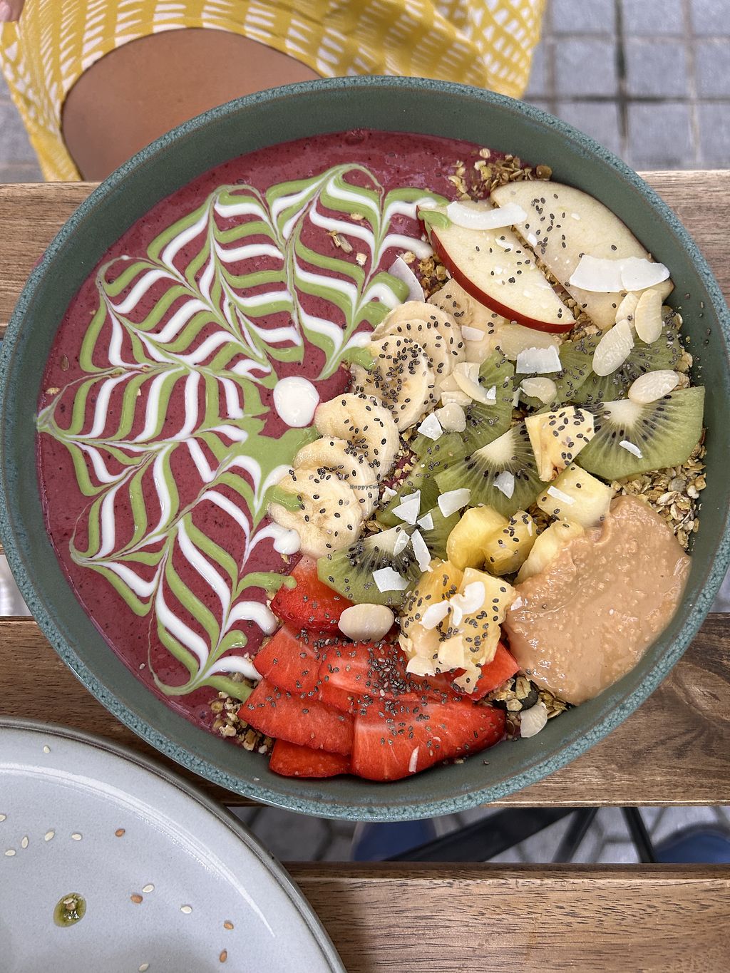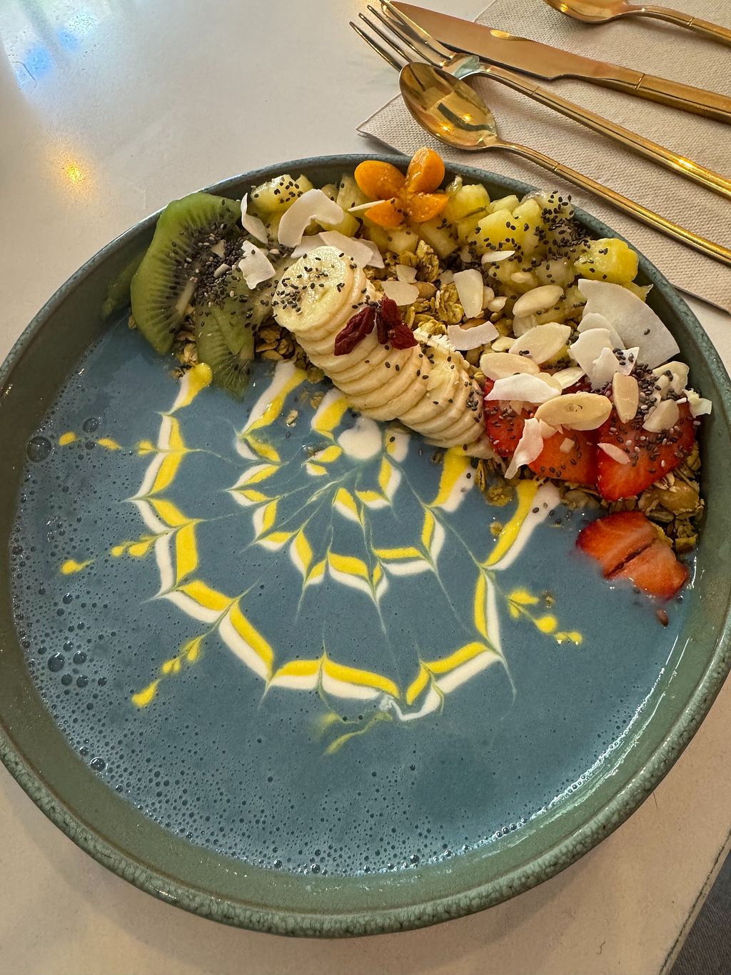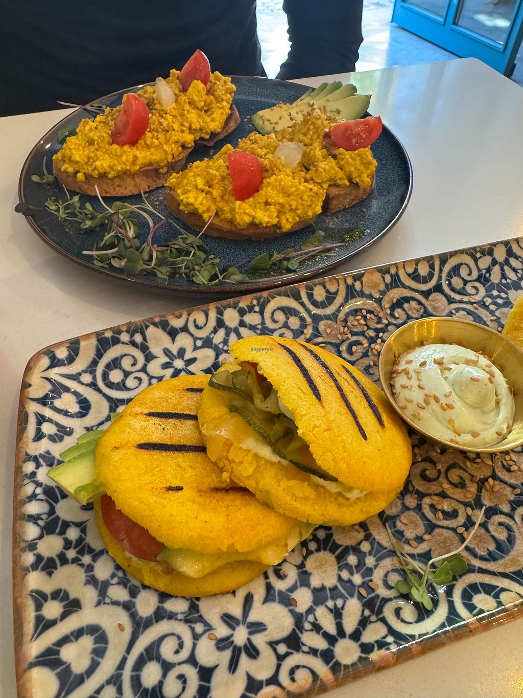 the place is very sweet but the food isn’t anything you wouldn’t find at another vegan restaurant..still decent and a nice spot:) i had a smoothie bowl which was a bit boring and arepas but they weren’t amazing