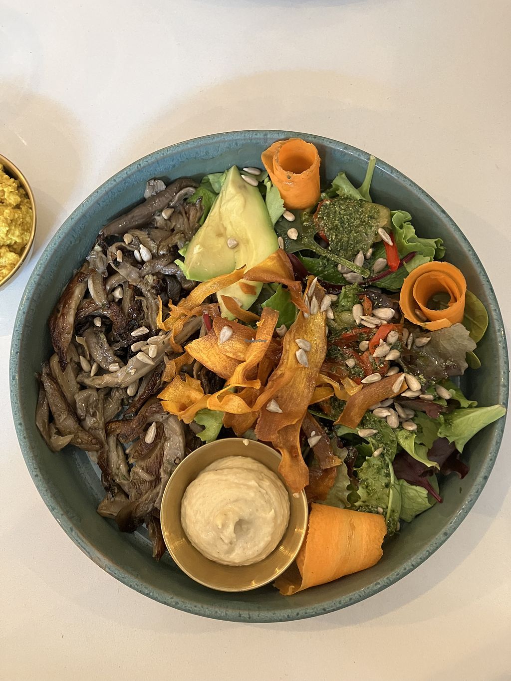 If you're looking for really tasty, creative vegan food, this is the place to go. I had the mushroom bowl which was a combination of fried mushrooms, crispy thin sweet potatoes, crispy chickpeas, fresh salad and veggies, fresh avocado, quinoa, seeds, pesto and hummus. The composition of these ingredients was sooo tasty. Also the service was fast and very friendly! I'll come back again!