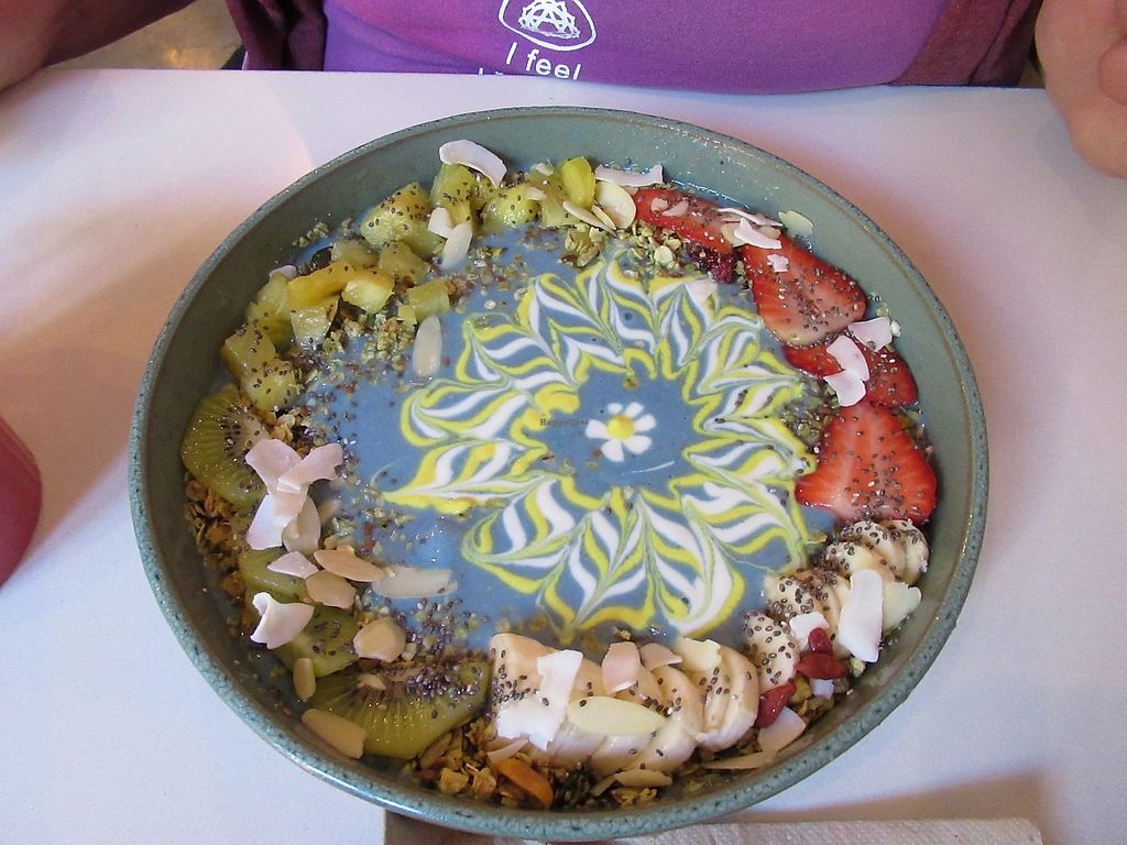 The emphasis on the yoga lifestyle wasn’t for me. There is massage parlor music inside, but luckily you can sit outside too.