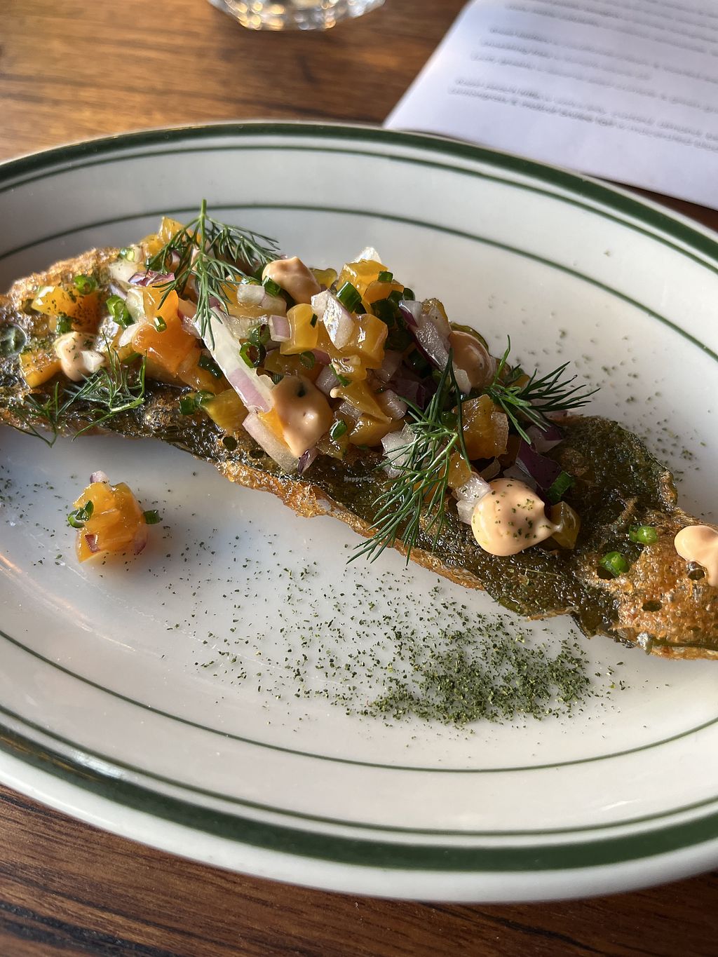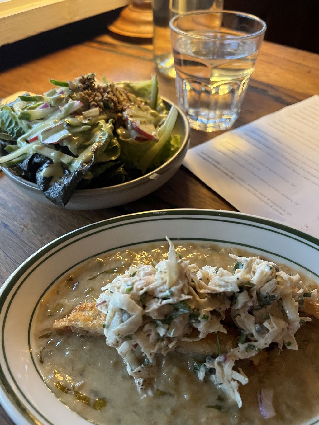 Read moreWent with 15 others, couldn't wait to support another local vegan restaurant. Reservations made, seated at 2 tables b/c we were too large a party and the waitress came over like she was doing us a favour. Dumped one menu on the table and rolled her eyes when we asked for more. Food was nice but small portions. One friend got a salad which was a packet of arugula and some herbs-she was disappointed. Barely remember the food I shared with my partner. There was a second seating at 7:30, by 7 we were reminded of this fact several times and made to feel we needed to leave NOW. Disgusted by the treatment (all 15 of us) we decided to go to the always perfect Brother Bon down the street. As I got up they were barking at us and nervously I fell off my knee scooter (I'd just had surgery and was in a cast) the waitress stood in front of me watching me try to get up as my partner rushed over to help. Did she ask how I was or even pretend to help? NOPE! She stood there like I was pathetic and in her way.