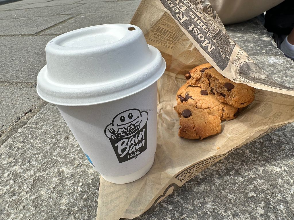 Tea (with oat milk) and vegan cookie
