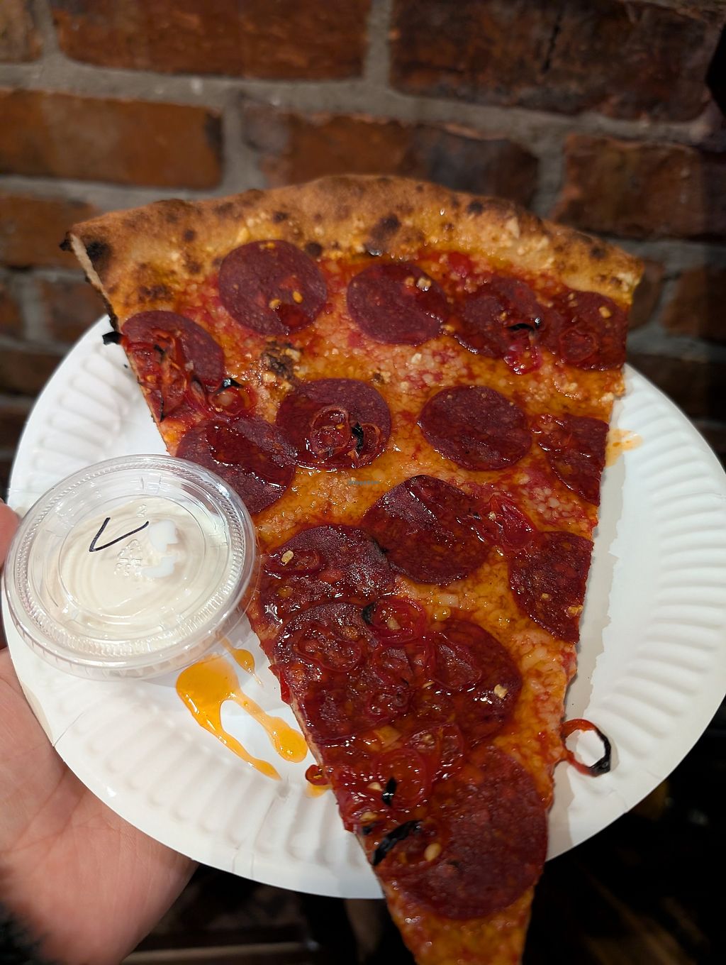 Definitely amongst the best pizza I’ve ever had! We were passing by and noticed the line, and decided to try when we noticed vegan options. Was not disappointed - it was the perfect slice! There’s vegan garlic dip too!