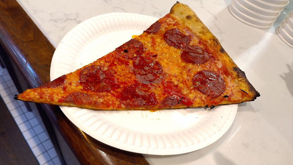 Heard good things about this place, so gave it a try. Long queue that moved slowly, but I guess it was worth it for once. Two vegan options available which are the marinara and sausage pizza. The slice I had was crispy and rich in taste.