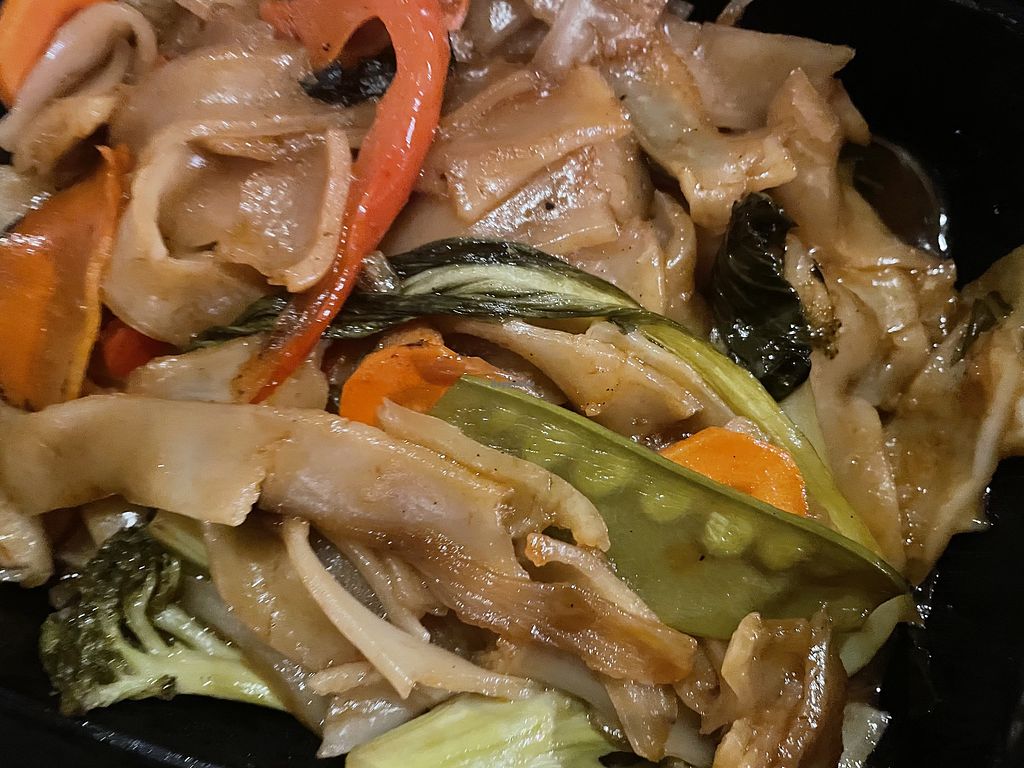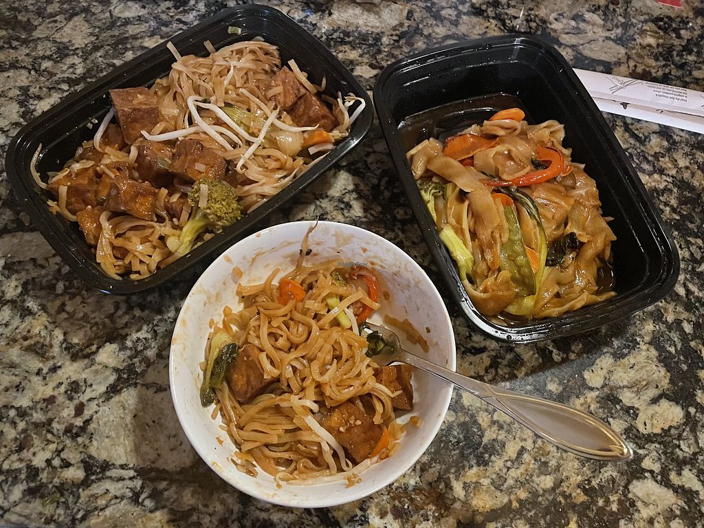 Vegan Pad Thai w/ tofu & veggies (left) as well vegan drunken noodles …