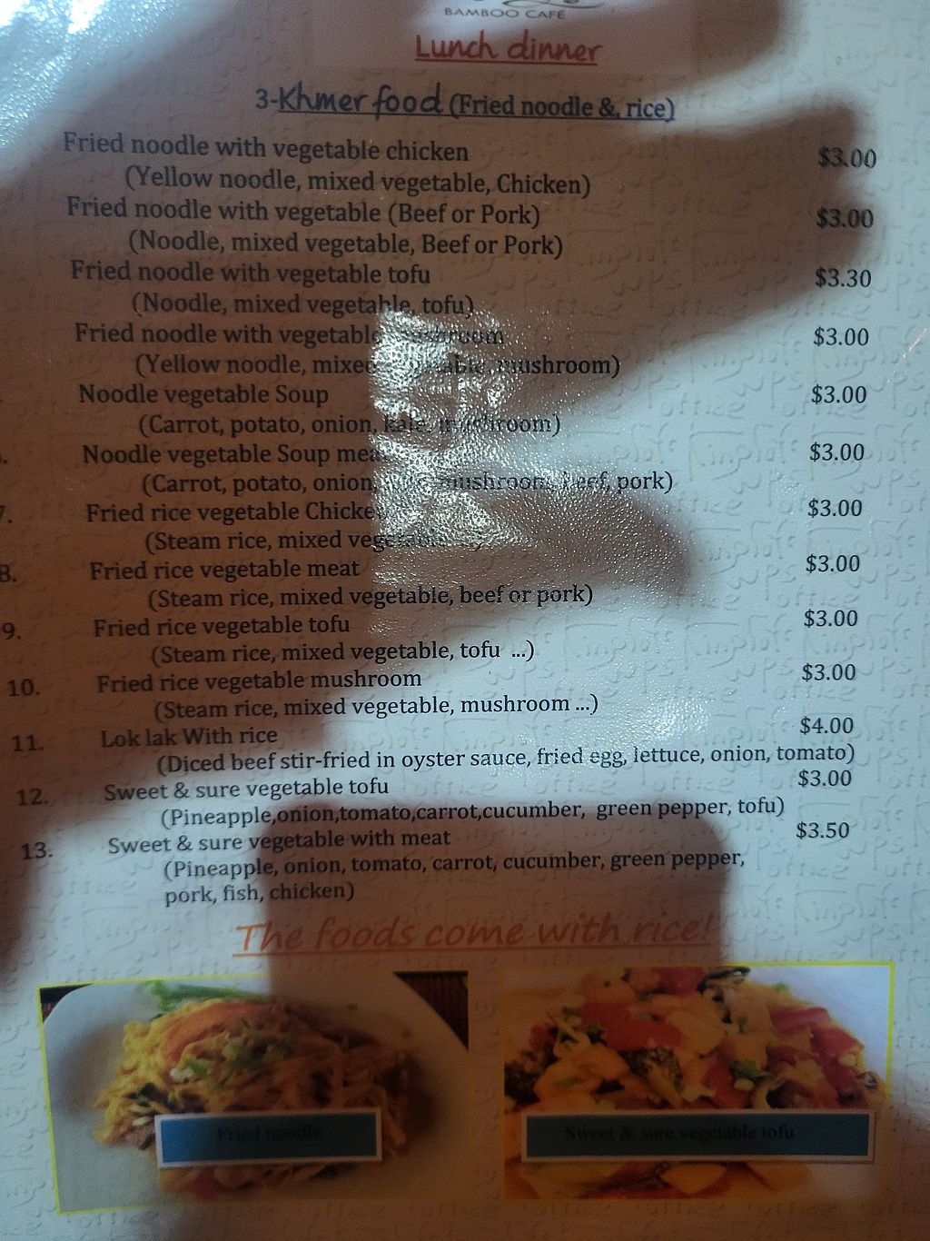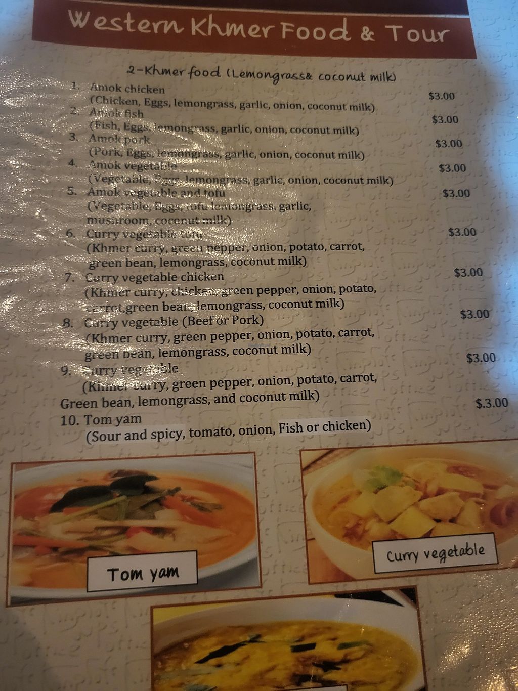 Serves meat, vegan options available. Small Khmer restaurant serving coffee and some vegan food options, including fried noodles with tofu vegetables, curry vegetable tofu, and sweet & sour tofu. Open Mon-Sun 6:30am-10:00pm.