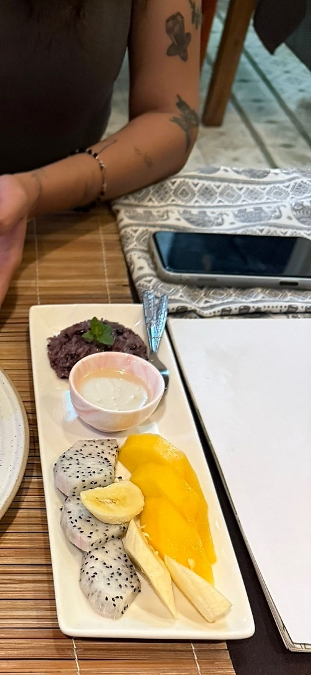 Read morePros: Vegan menu page, Nice setting, staff, Made smiley face in rice, wonderful sticky rice