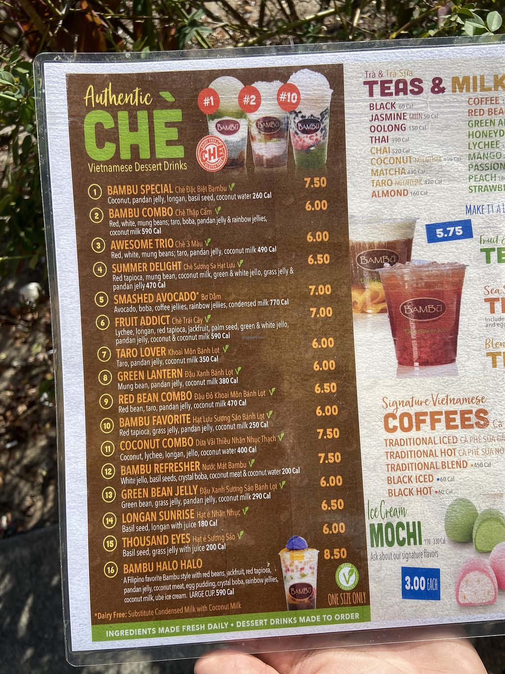 Chain of Vietnamese beverage and dessert cafes. Chè desserts are vegan friendly except the "smashing avocado," which could be substituted with coconut milk. All jellies, jellos, and boba are vegan friendly. Smoothies can be substituted with coconut milk. Has coffee drinks plus some mochi is vegan. Open Mon-Thu 9:30am-8:30pm, Fri 12:00pm-8:30pm, Sat-Sun 9:30am-8:30pm.