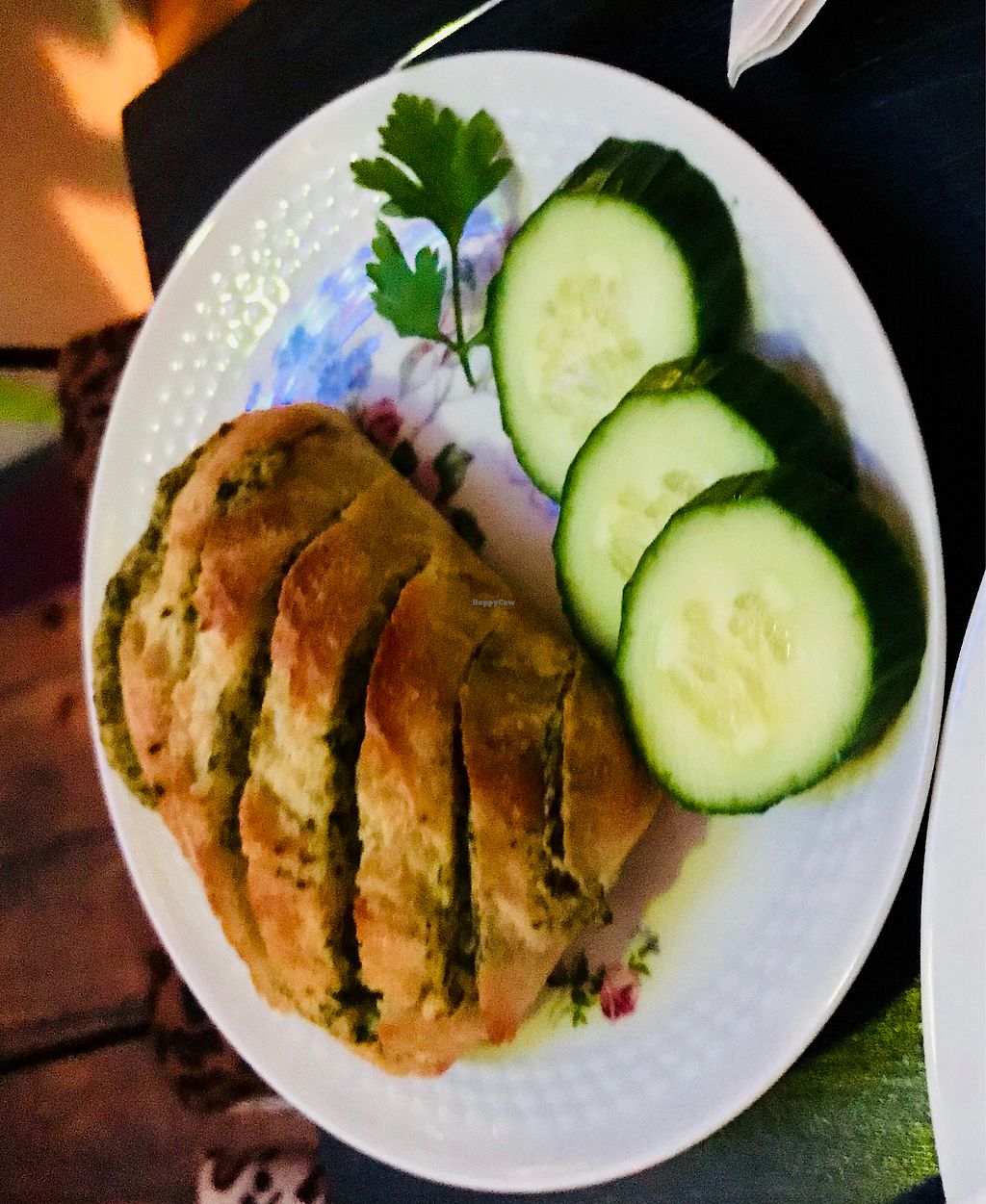 Quiche with spinach, mushrooms and tomatoes. Served with salat and "cu…