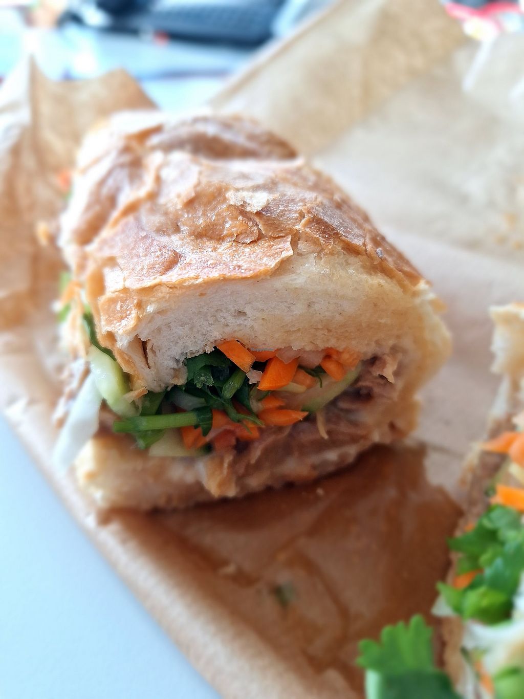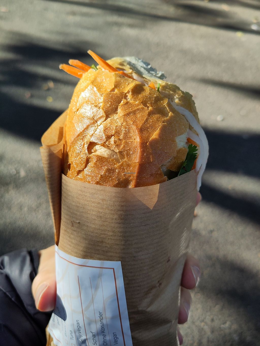 Super leckere Banh Mi! zwei vegane Optionen! Tofu schmeckt etwas frischer, Vegan Soy meat „deftiger“
