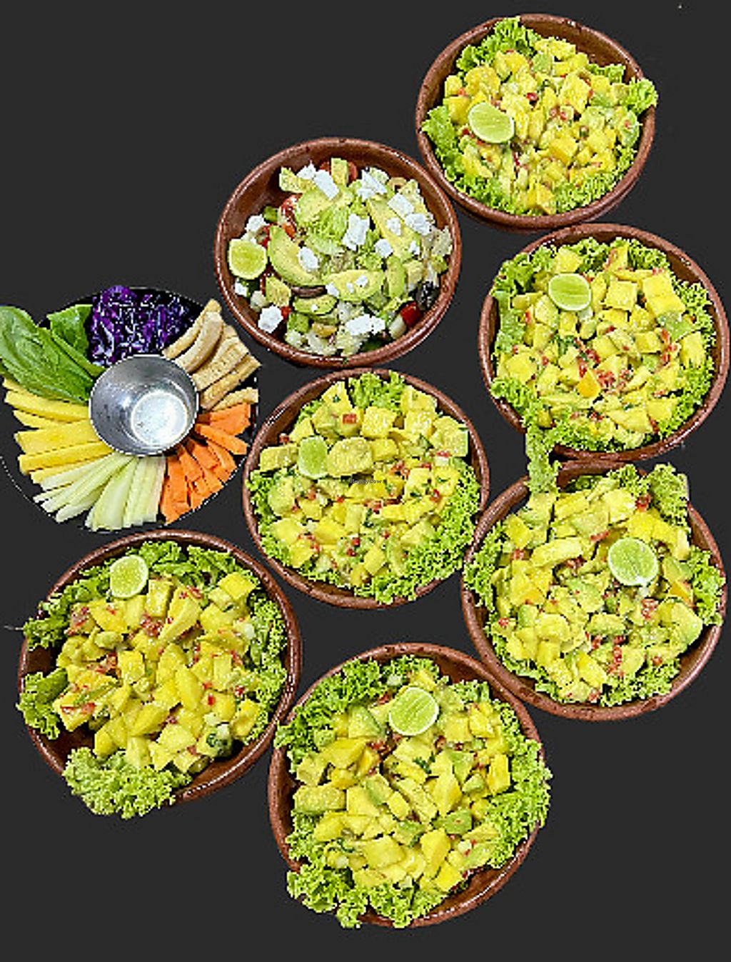 Mango and avocado salad and crudites