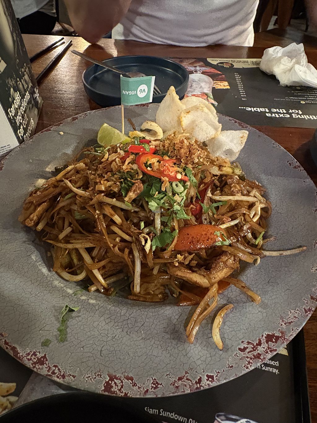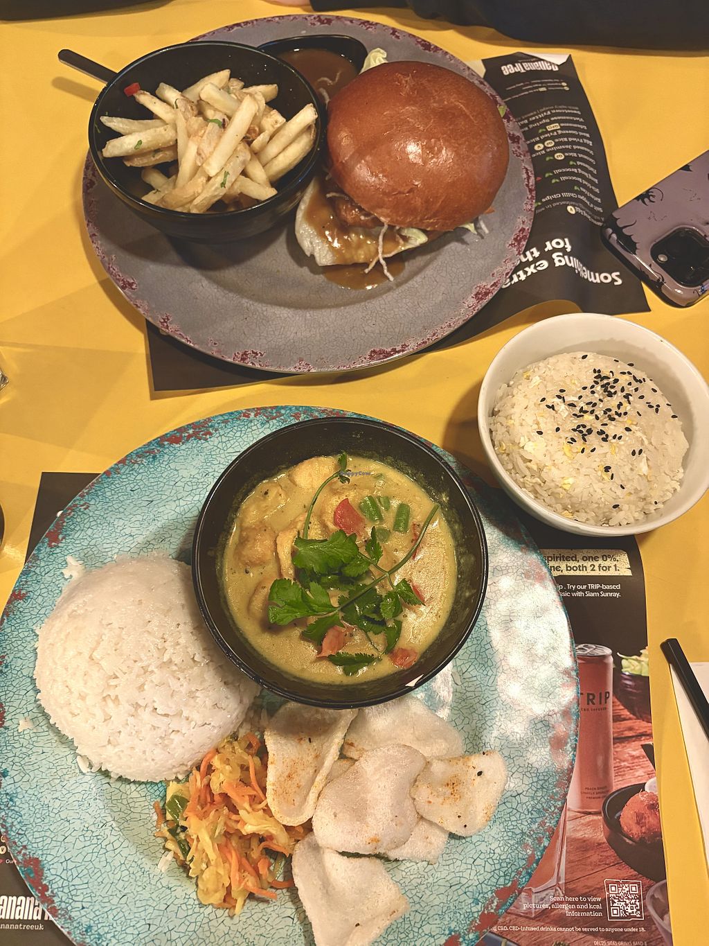 Vegan coconut kari with ‘vegan bites’, aubergine and bean sprouts, ser…