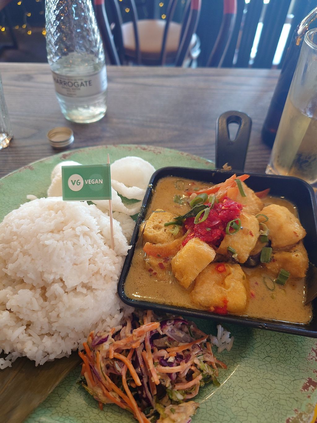 Thai foods. On the menu lots of vegan food. And the food was amazing. When the main meal came it had a little flag on it "vegan". I explained to the really nice waiter (Adam) about the happy cow app as he didn't know about it.